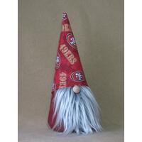 Weighted for stability, this sporty gnome is made of felt and cotton fabric and measures 10" tall x 4-1/2" deep. (Hat pattern may vary a bit, due to how the hat is cut from the fabric.)