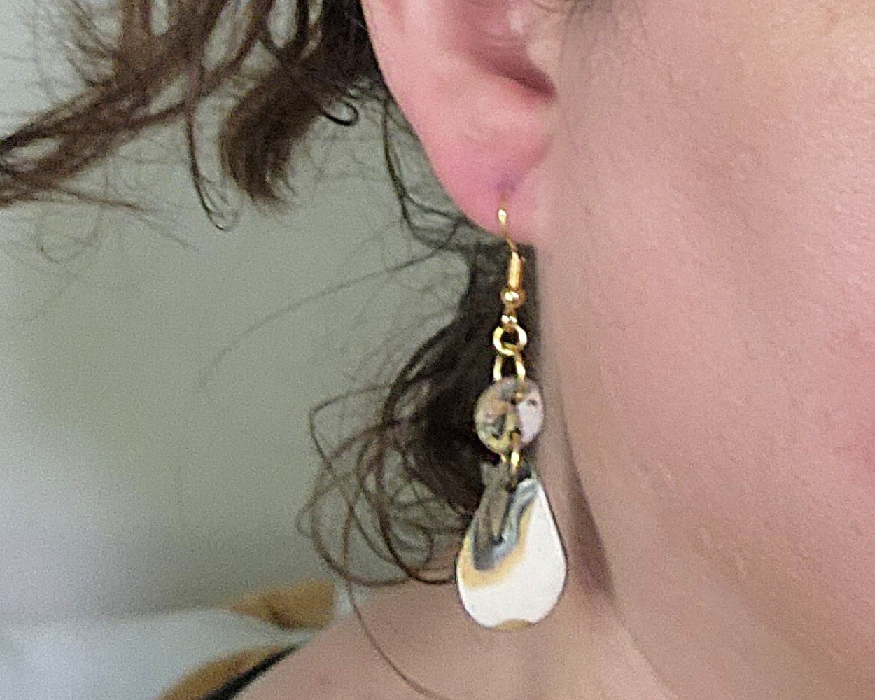 Each piece is created by hand in small batches, ensuring attention to detail and quality. From mixing the clay colors to texturing, baking, sanding, and assembling, every step is done with care and creativity. Because each pair is handmade, slight variations make your earrings truly one-of-a-kind.