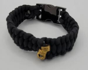 Black paracord bracelet with metal black buckle and 4 gold be...