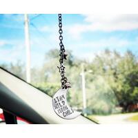 This piece is a handstamped 1" washer accented with a heart charm on an 18" stainless steel chain.