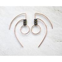Made from 14K rose gold fill wire, tiny hematite beads and matte mookiate jasper beads. The wire has portions that are hammered to give the earring a unique combo of texture and smooth.