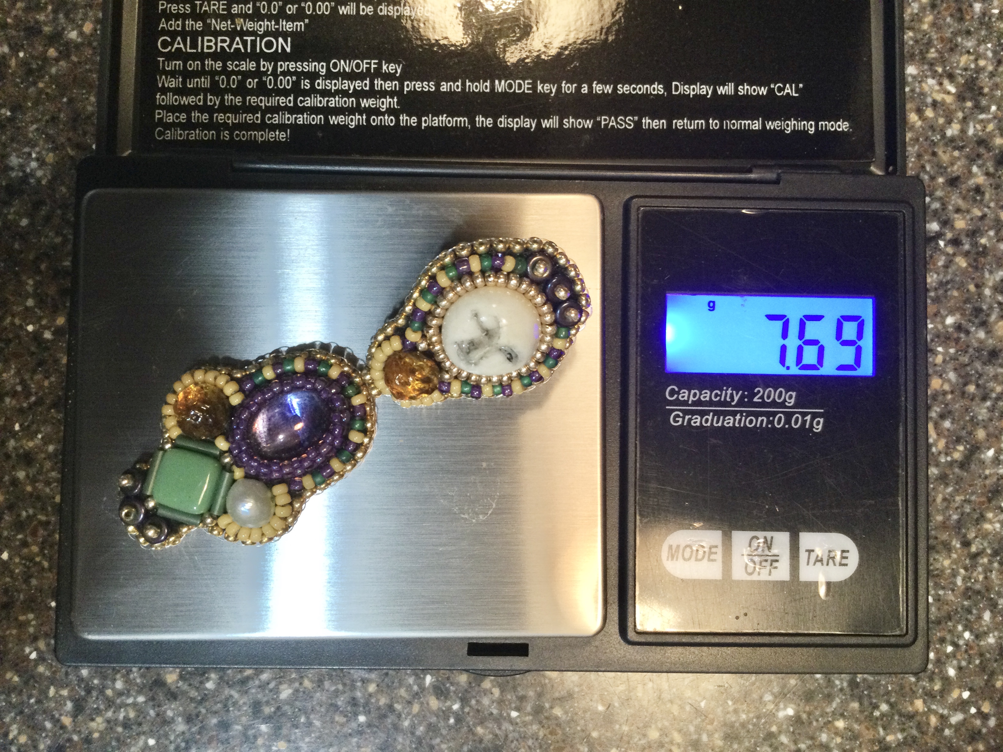 Every care has been taken to assure your piece will last for generations. However calamities can occur. Your piece will be restored once for free. Be aware that an exact restoration may not be possible due to extent of damage and the limited availability of certain beads or stones, and will be at my discretion. Just contact me via email at embroideredjewelry@gmail.com detailing the issue and pay round trip shipping.