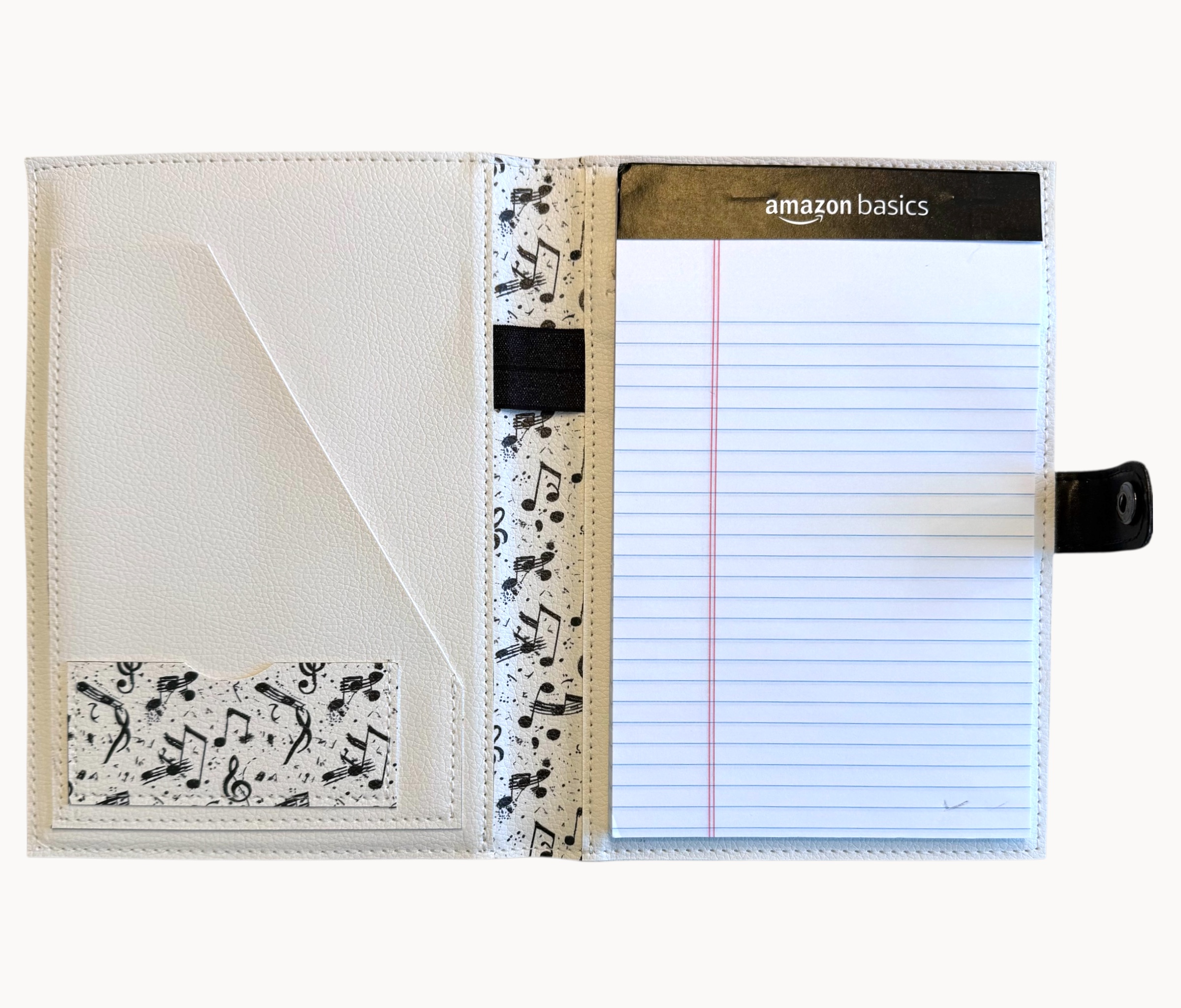 • Notepad Size: Designed to fit a junior legal pad (5" x 8") which is included.