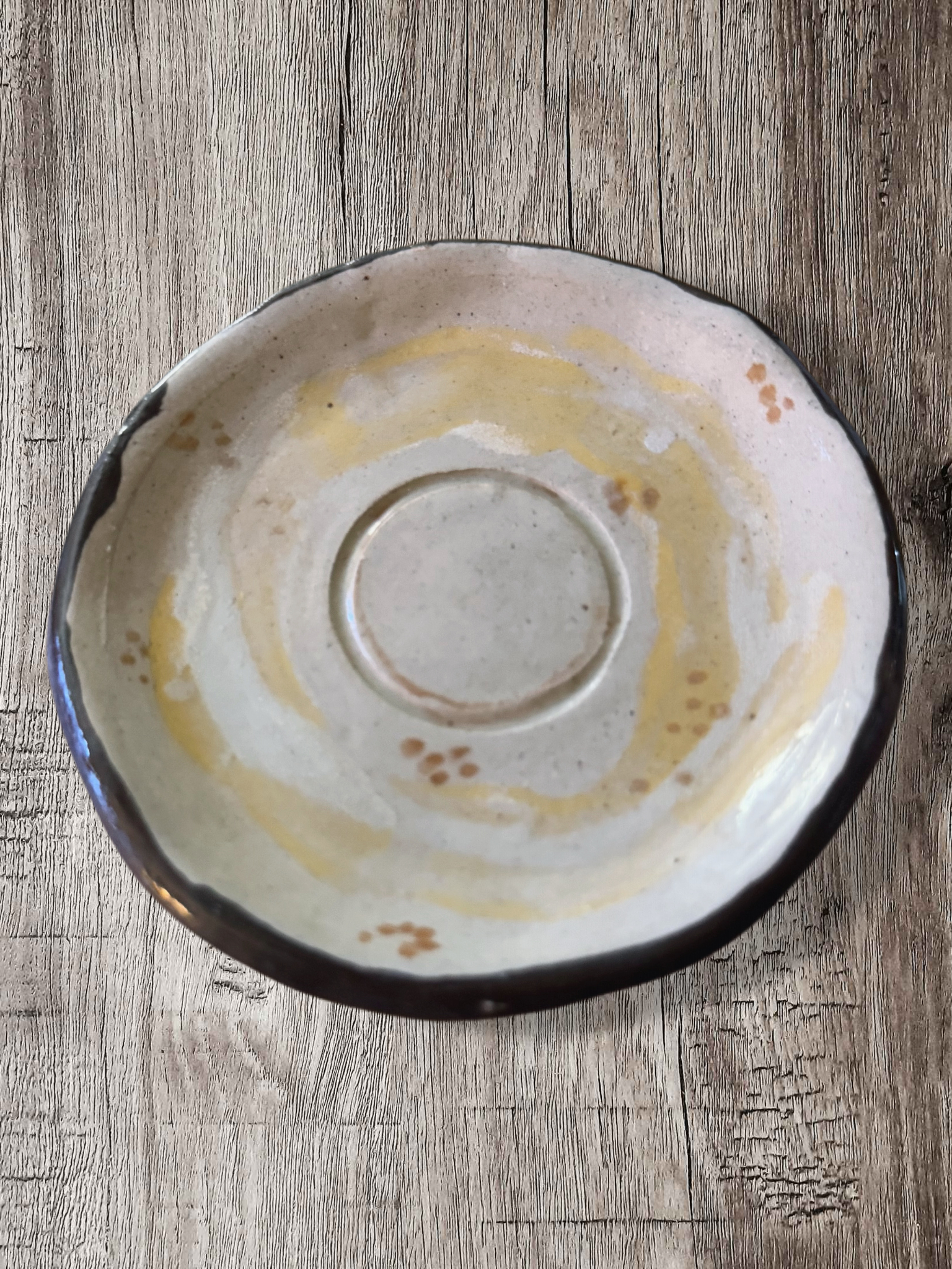 Each coaster in the Toasted Bagel Set is hand-cut from rolled clay slabs, then shaped and smoothed to create a sturdy base. A circular indention is pressed into the center to hold mugs or glasses securely. Once dried, each piece is bisque fired before being hand-glazed with swirls of golden and cream tones that mimic the look of a warm, toasted bagel.