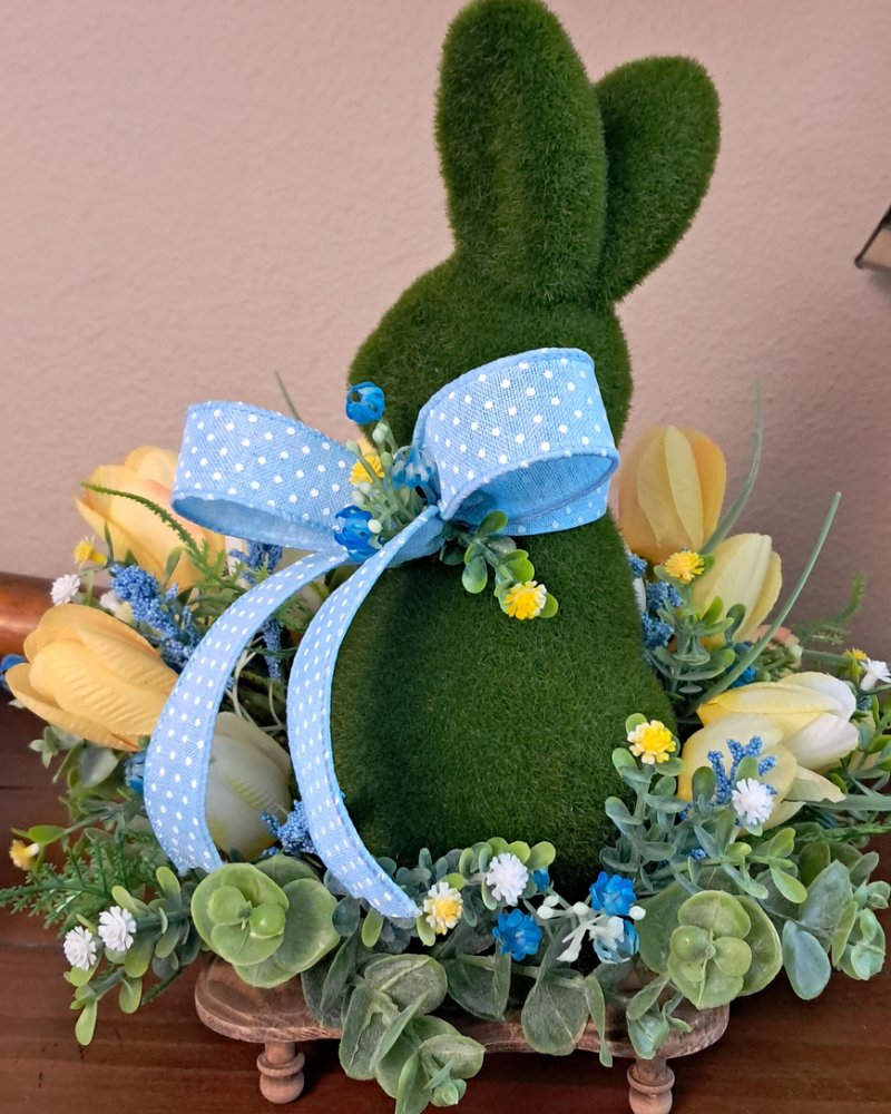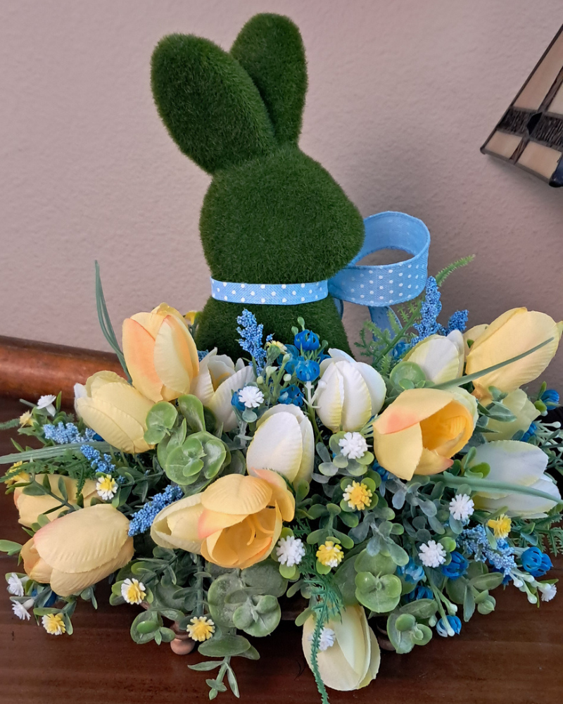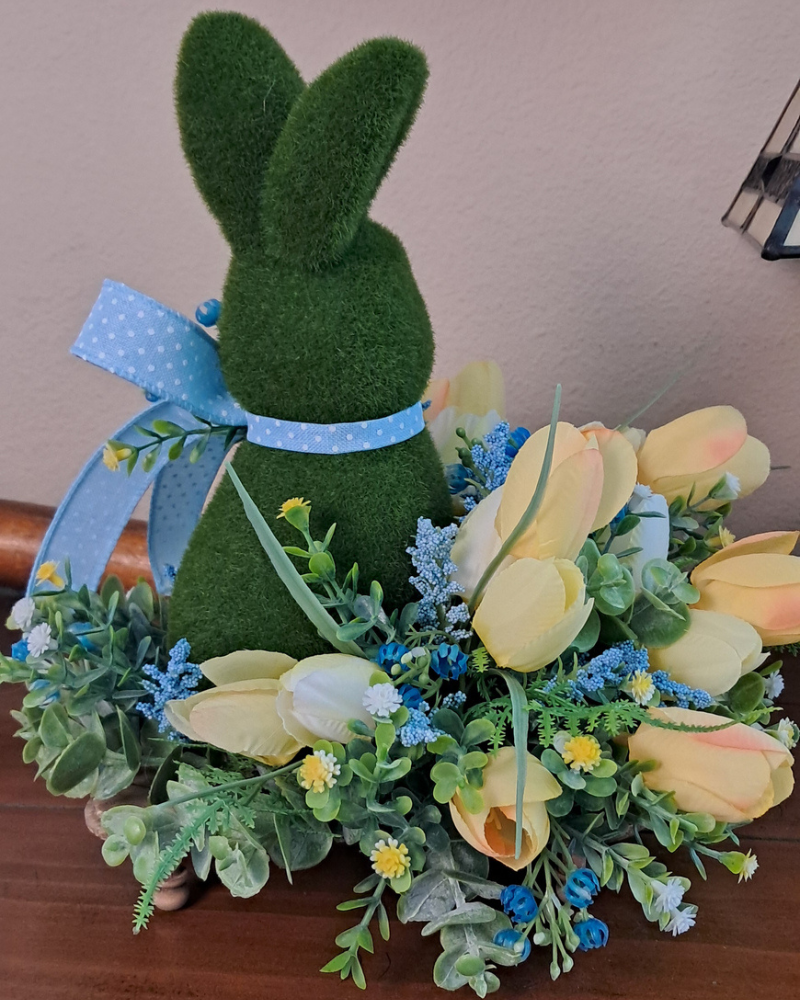 Perfect for Easter decorating, spring displays, or everyday seasonal styling, this bunny arrangement complements farmhouse, cottage, and English garden decor beautifully. A charming accent for tabletops, mantels, shelves, or entryway displays — and a lovely way to celebrate the season with handcrafted beauty.
