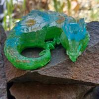 Cute 3" mushroom storage box. Adorned in green and brown Spanish moss with green dyed resin, this box is perfect to hide away any small valuables you might have.
