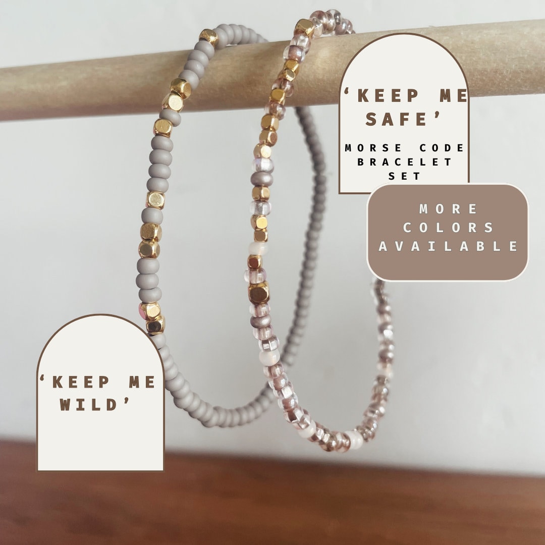 "Keep Me Wild" and "Keep Me Safe" morse code bracelet set! Choose your colors for a truly unique and personalized mother/daughter jewelry experience! Perfect Mother's Day Gift!