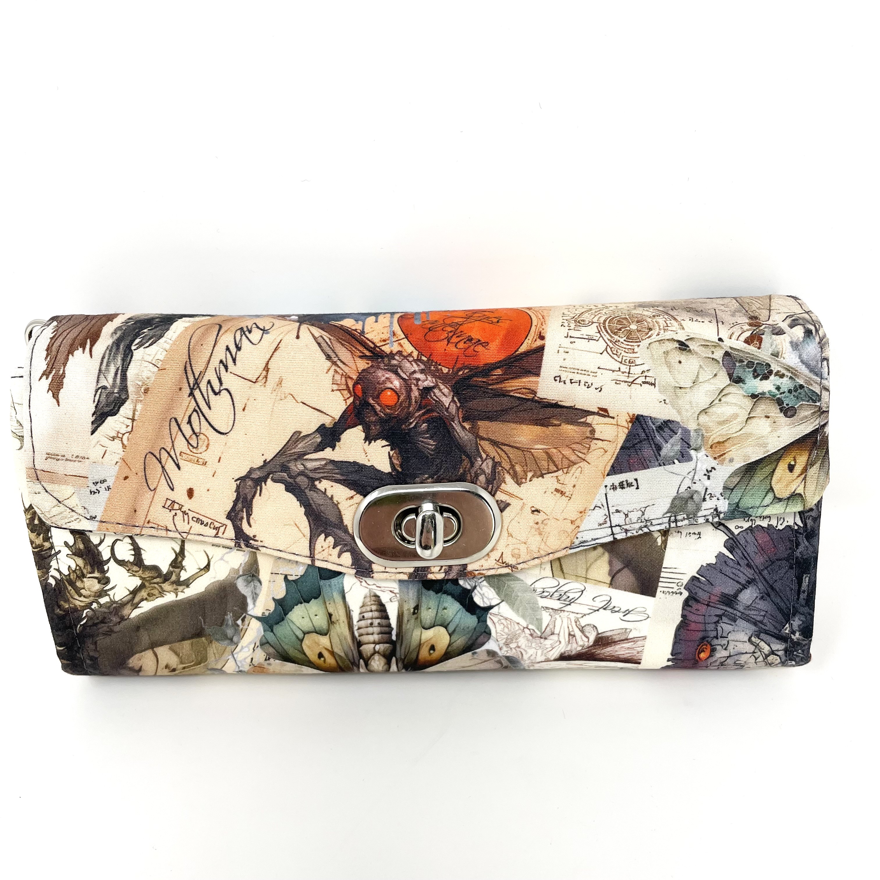 Mothman Cryptic Humanoid Creature West Virginia Folklore Handmade | Accordion Wallet | Organizer | Clutch | Holds Cell Phone| Ready To Ship