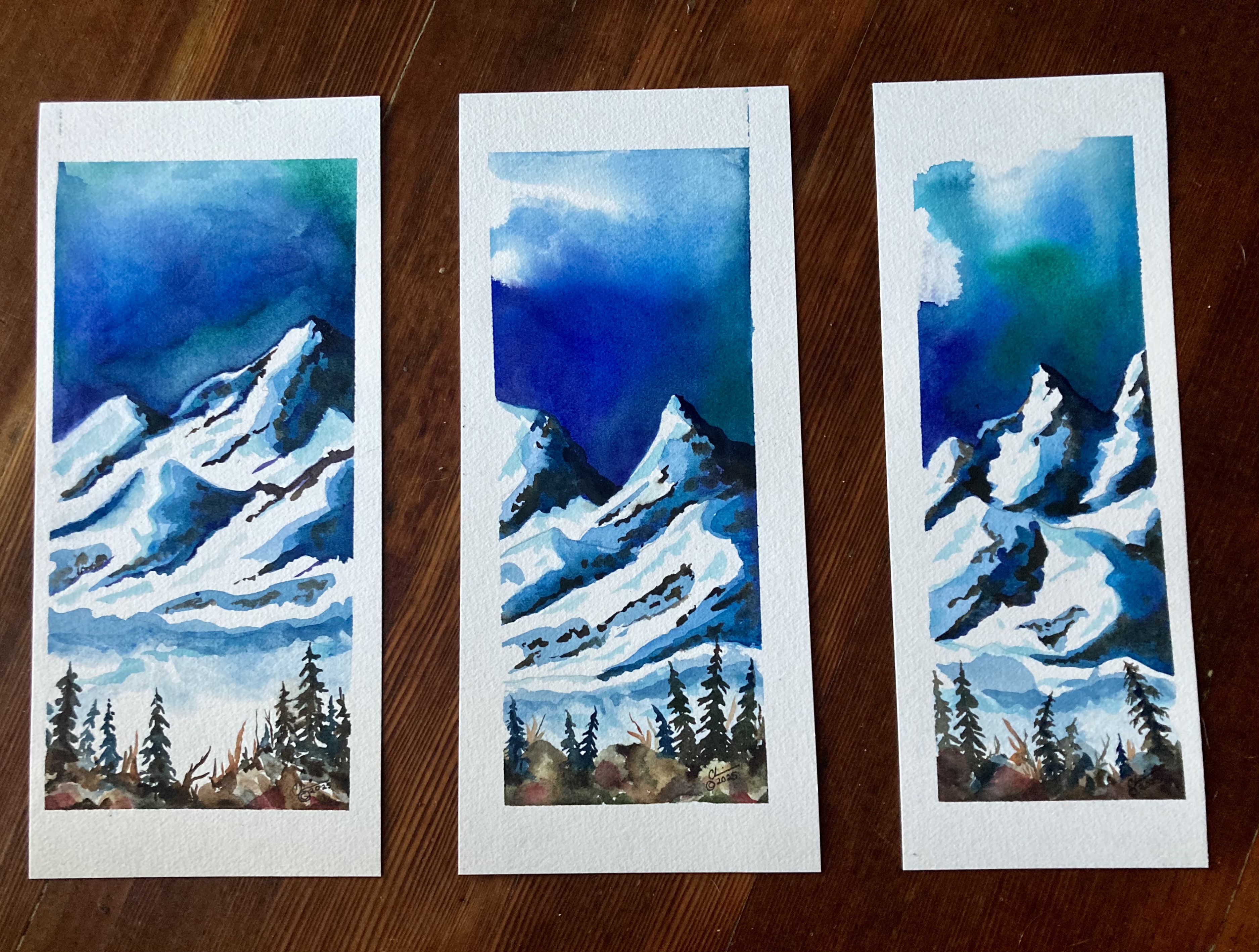 “Seward Highway" is an original watercolor on watercolor paper. It is painted on three separate pieces of watercolor paper designed to be framed and matted as one. I do daily watercolor paintings. This is one.