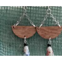 Multi colored enamel triangle charms with red bead on fishhook style earrings.
