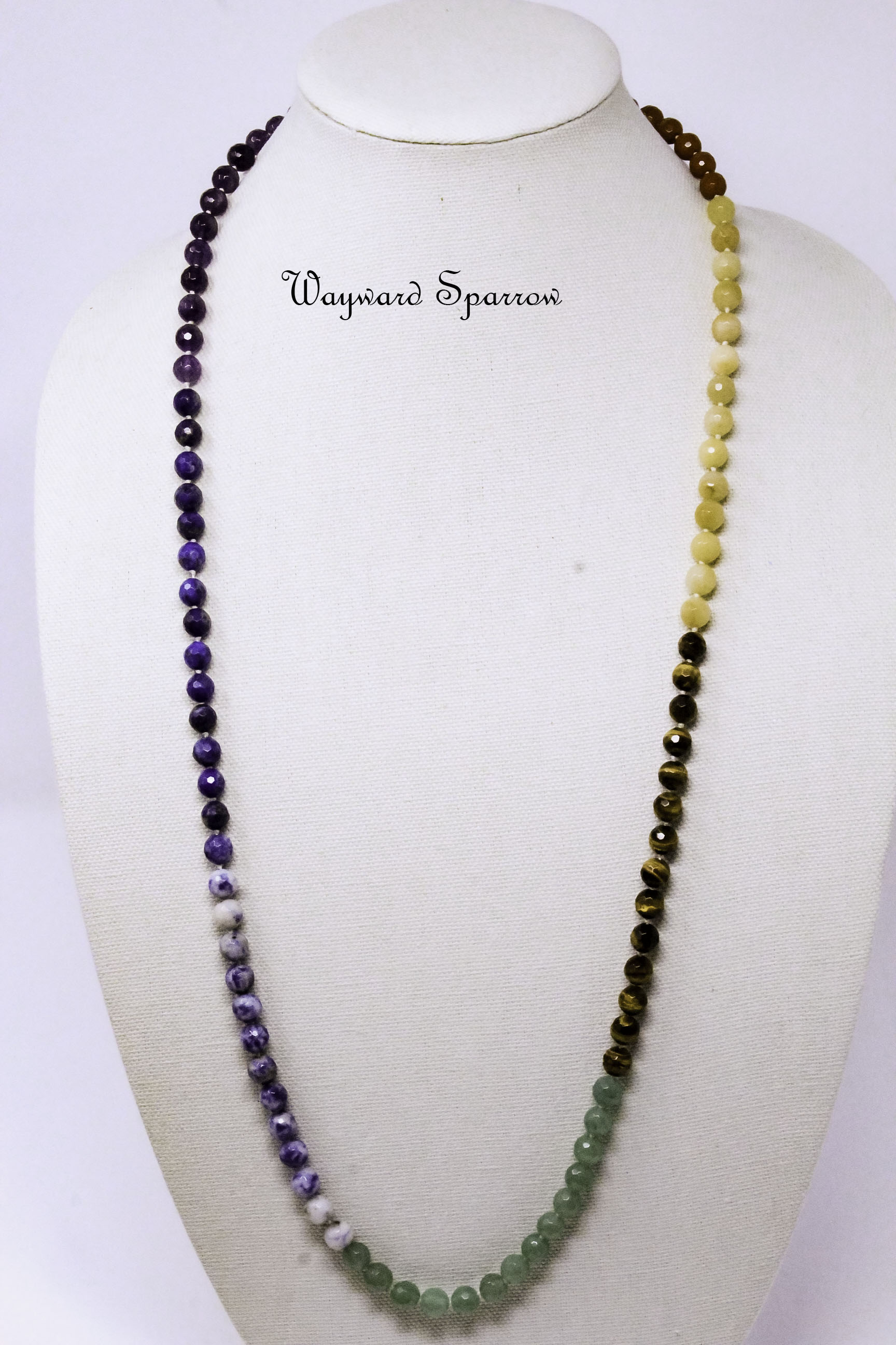 ? Multi-Gemstone Chakra Necklace ? This vibrant necklace celebrates balance and energy with a rainbow of genuine gemstones, each chosen for its unique beauty and spiritual properties. Hand-strung in a flowing gradient, the necklace features: