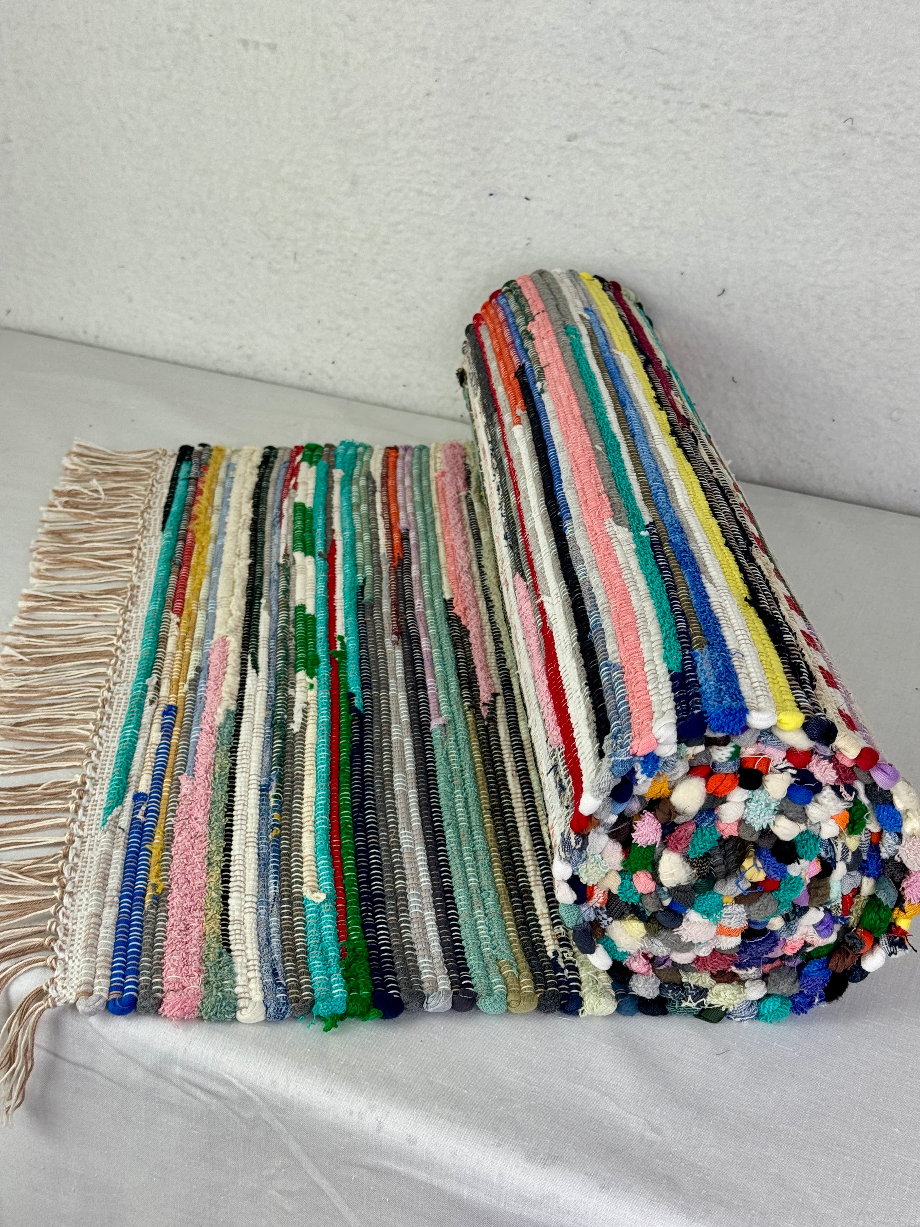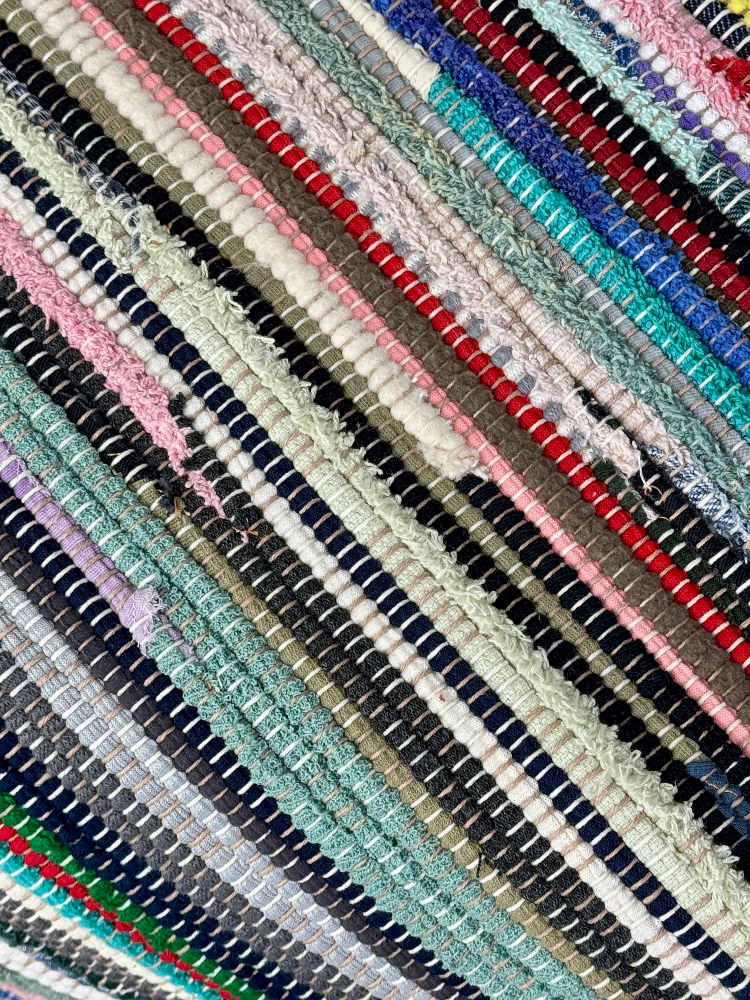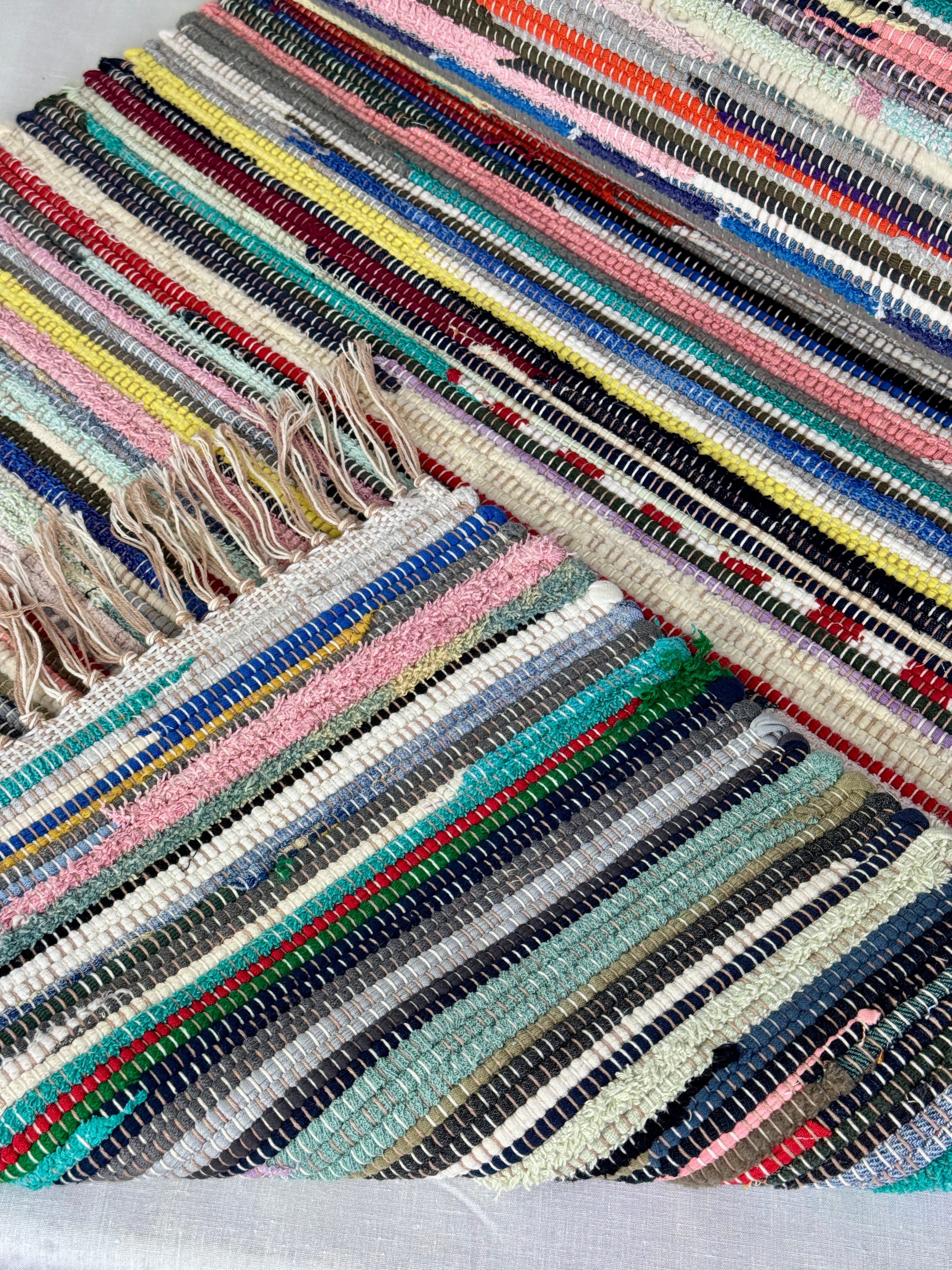 Discover the extraordinary world of recycling with my remarkable rugs. Crafted from once-beloved household textiles, these rugs breathe new life into forgotten fabrics. Each rug is a captivating tapestry of repurposed wonders, blending sweaters, socks, shirts, jeans, bedding, and beyond. Each rug lends its own uniqueness due to the blend of textures and colors.
