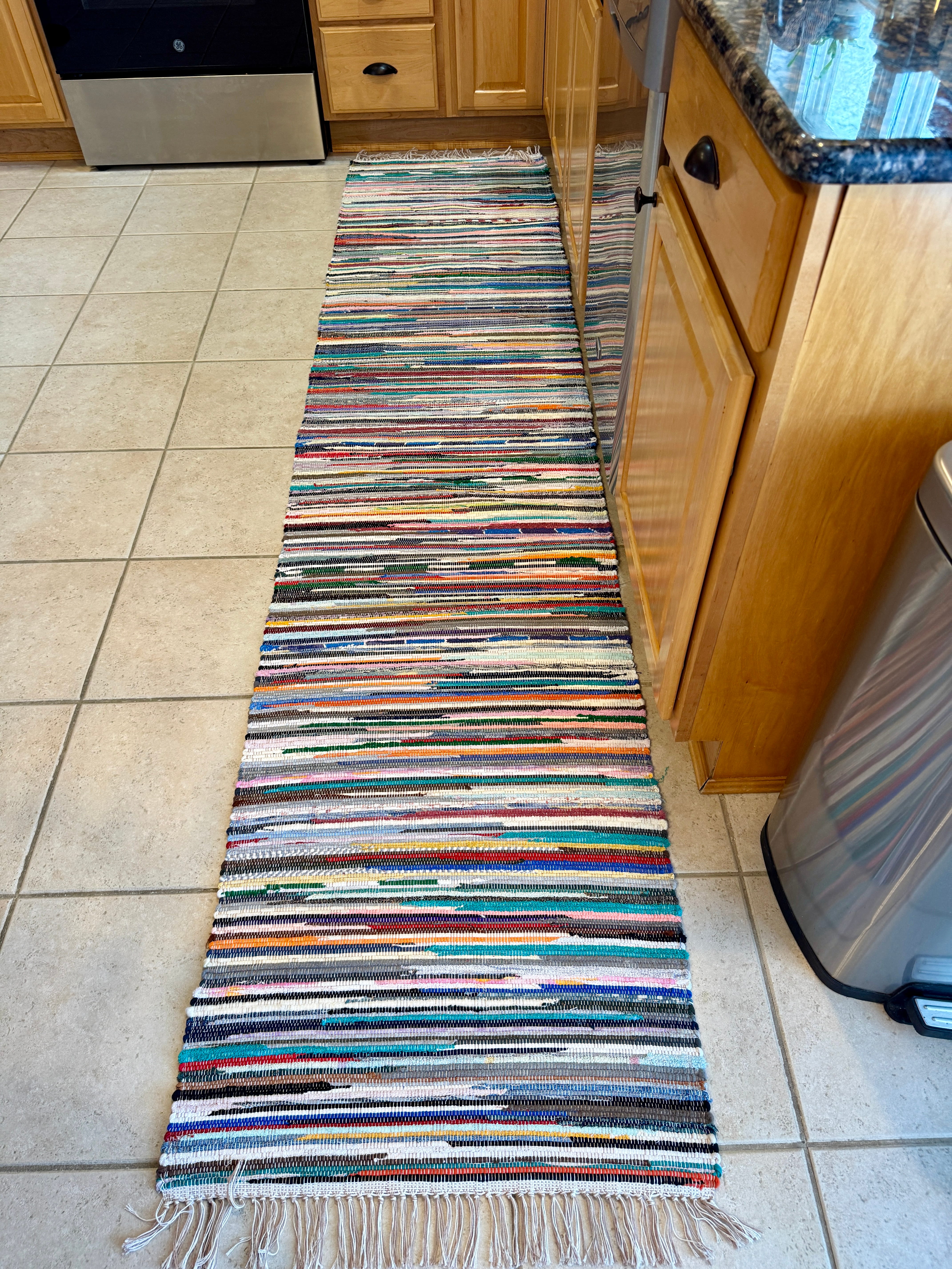 These days I call central Iowa home, and I carry on that family tradition by turning worn-out clothes and household textiles into handwoven rag rugs for 45+ years. Everything I make is crafted from upcycled materials—because I still believe what’s old can be made useful again.