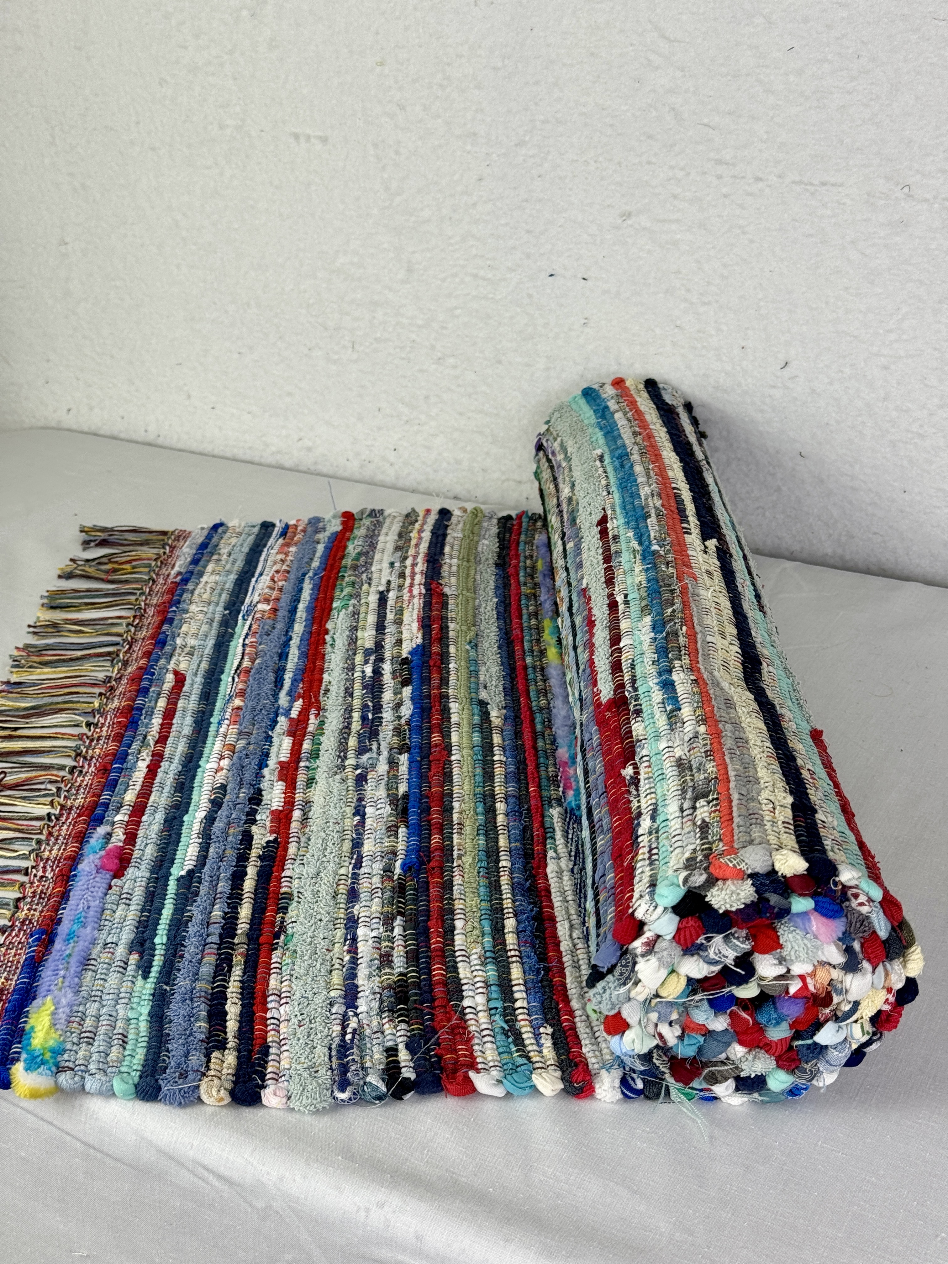 Discover the extraordinary world of recycling with my remarkable rugs. Crafted from once-beloved household textiles, these rugs breathe new life into forgotten fabrics. Each rug is a captivating tapestry of repurposed wonders, blending sweaters, socks, shirts, jeans, bedding, and beyond. Each rug lends its own uniqueness due to the blend of textures and colors.