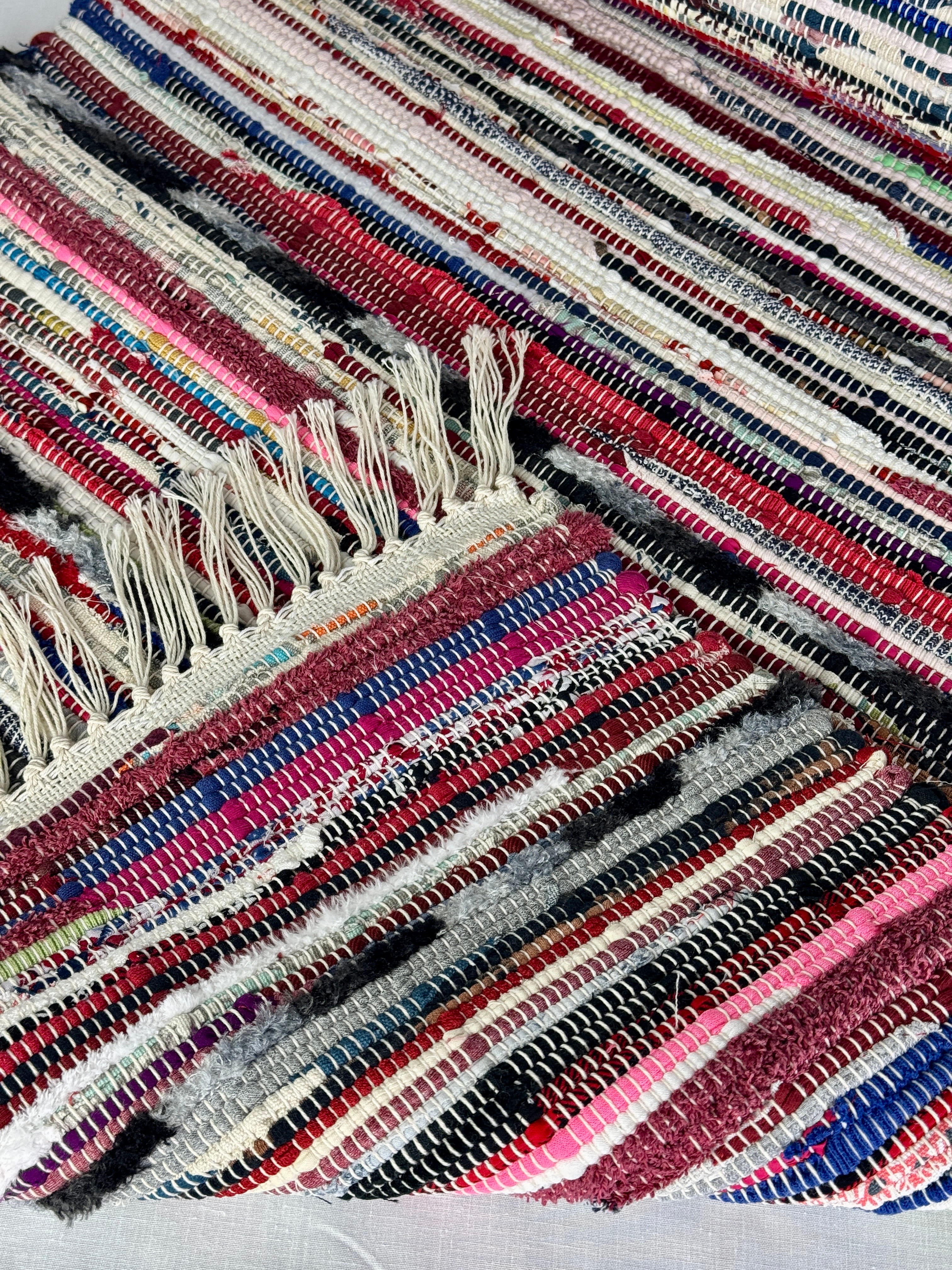 Discover the extraordinary world of recycling with my remarkable rugs. Crafted from once-beloved household textiles, these rugs breathe new life into forgotten fabrics. Each rug is a captivating tapestry of repurposed wonders, blending sweaters, socks, shirts, jeans, bedding, and beyond. Each rug lends its own uniqueness due to the blend of textures and colors.