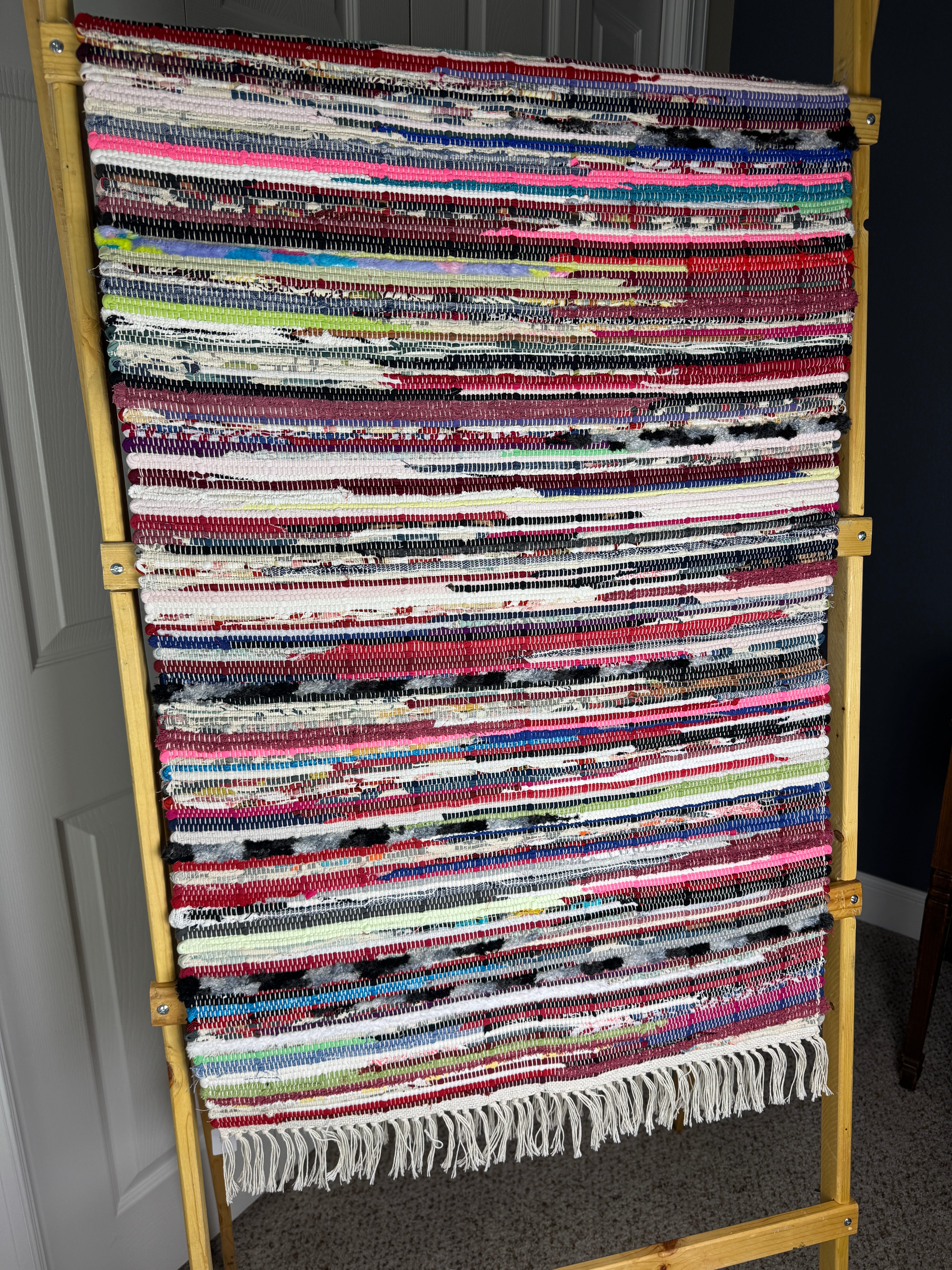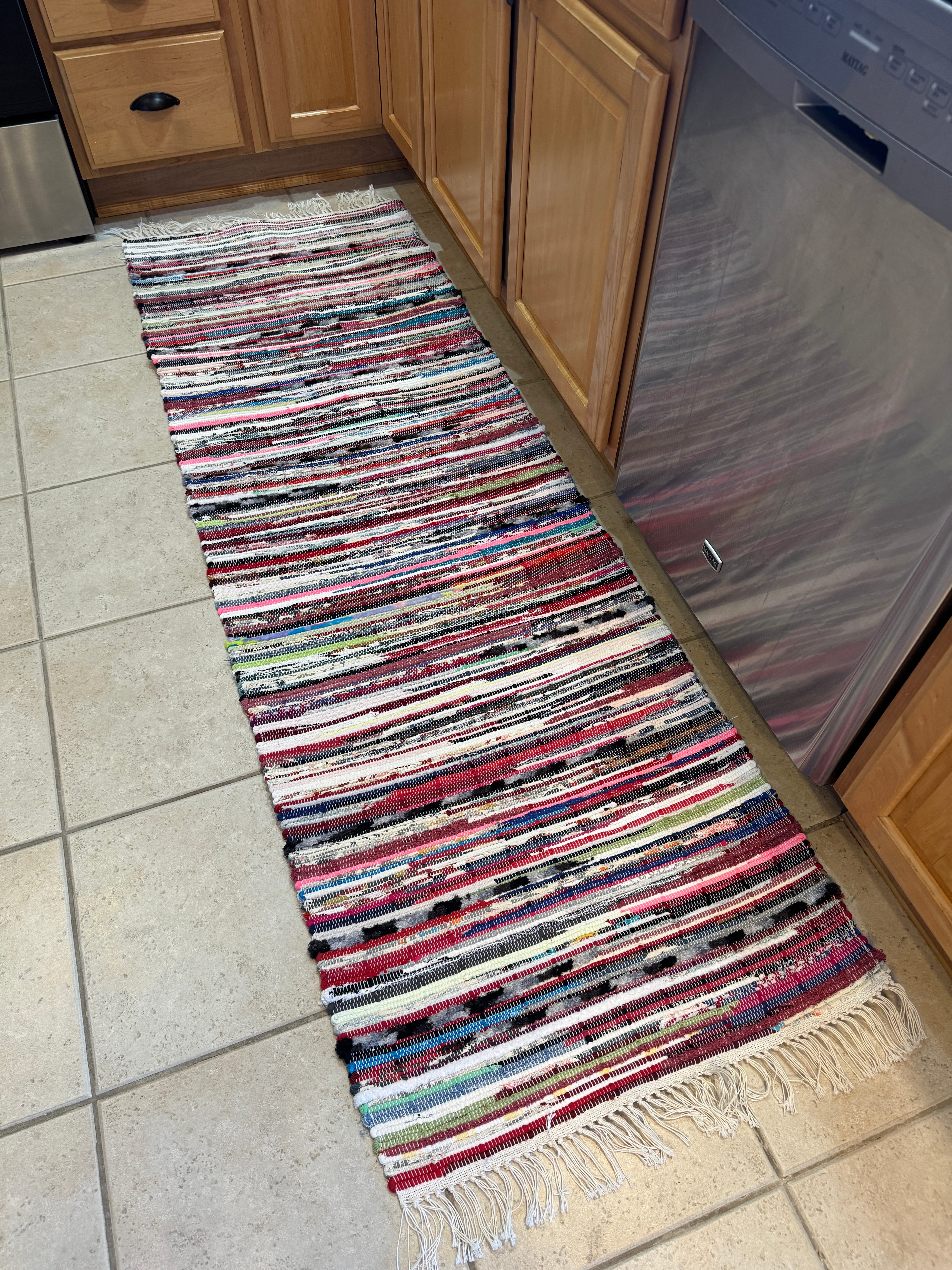 These days I call central Iowa home, and I carry on that family tradition by turning worn-out clothes and household textiles into handwoven rag rugs for 45+ years. Everything I make is crafted from upcycled materials—because I still believe what’s old can be made useful again.