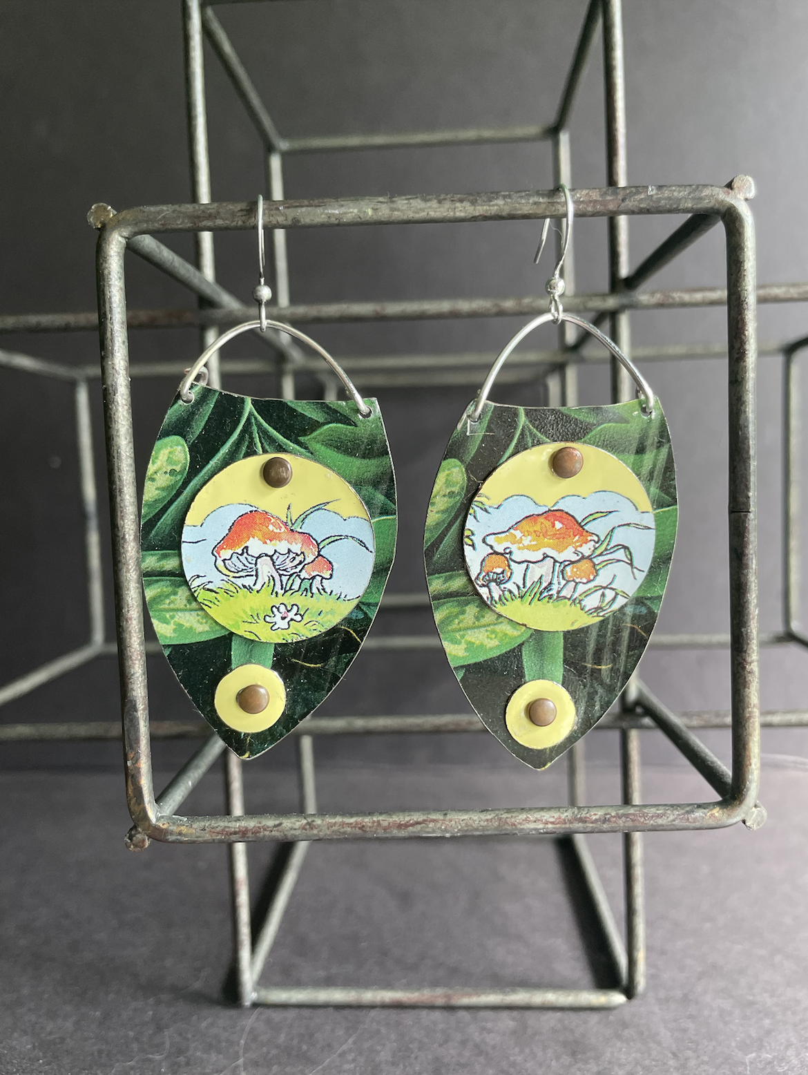 Mushrooms and springtime go together like beatboxing and rhythm. The earring findings are silver-plate and have no nickel. They come with a rubber stopper on the back so they won't fall out of your ears.