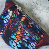 With its adjustable strap, this unique handmade bag can be worn comfortably over the shoulder or across the body. It's a medium sized bowler bag bringing out the nostalgic vibes with a shiny red appliqué mushroom on one side and a shiny green appliqué mushroom on the other. Inside is a colorful print featuring two well-known plumber brothers, their trusty steed & an enemy or two. There's 1 zipper pocket and a divided slip pocket inside.