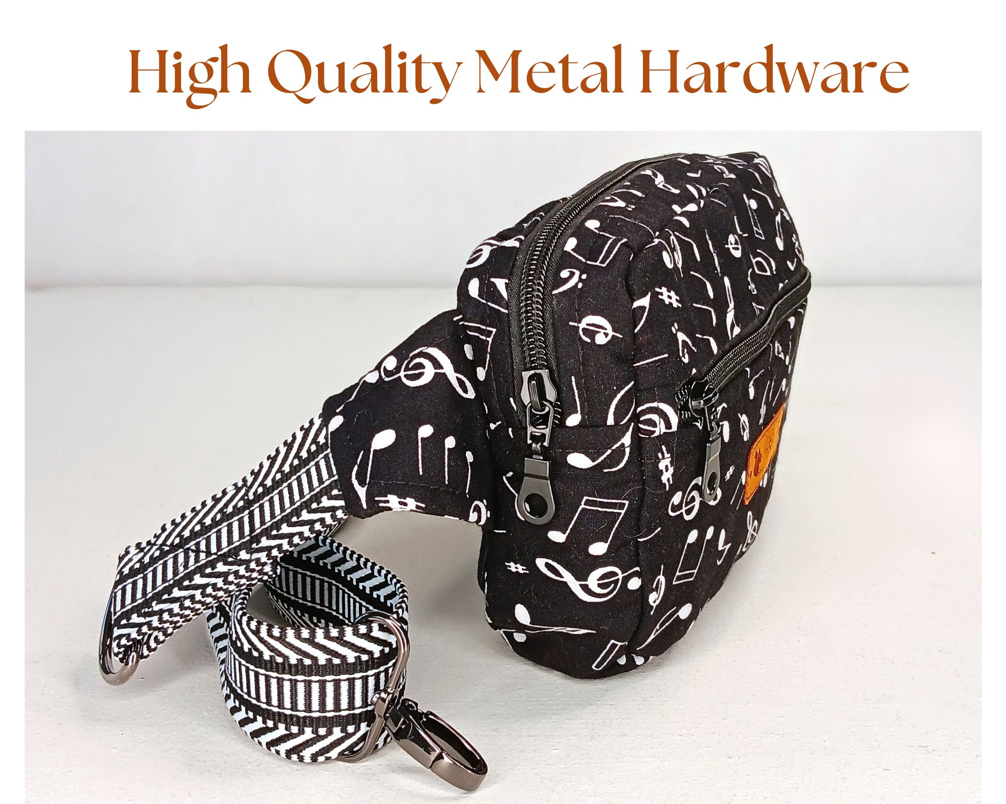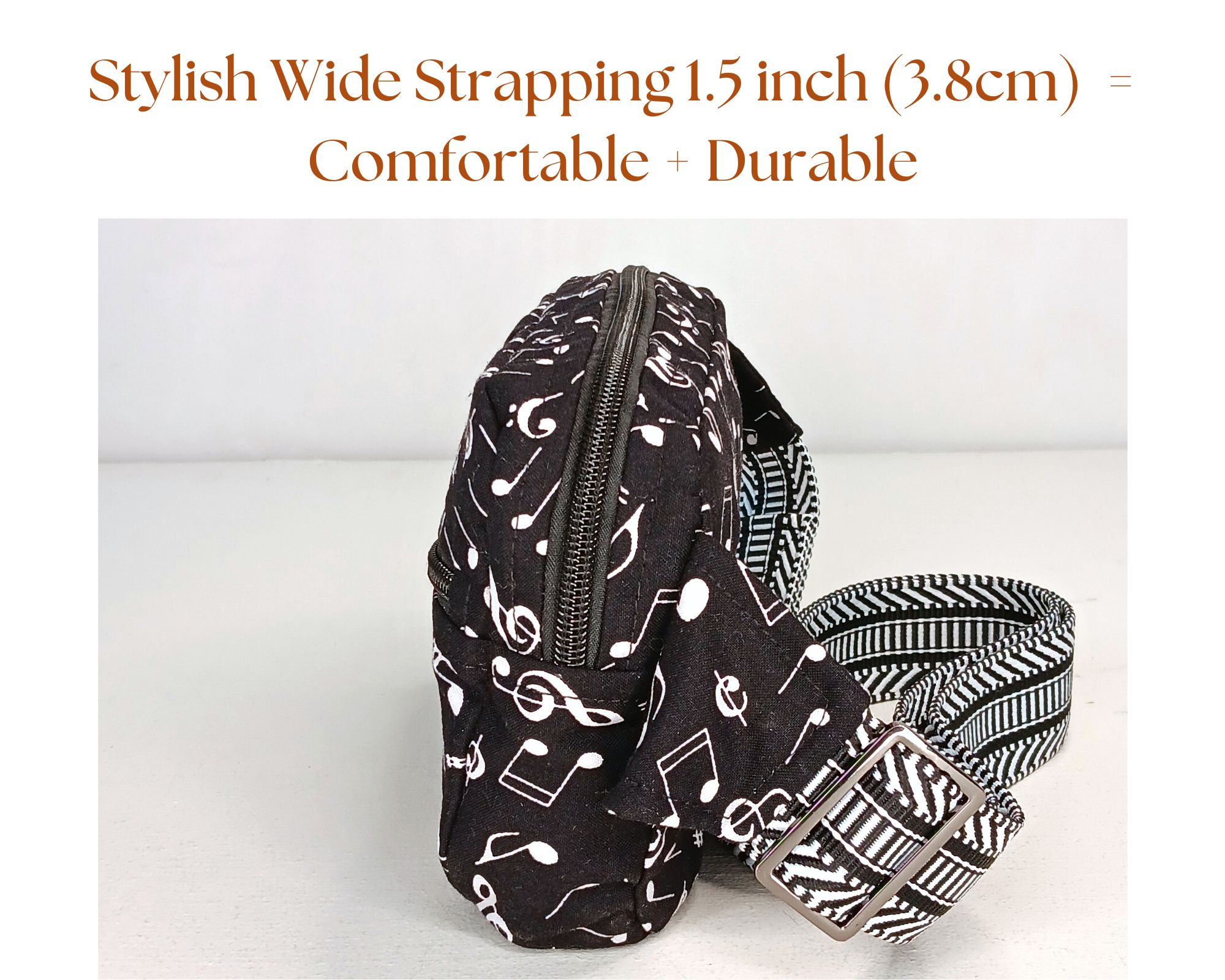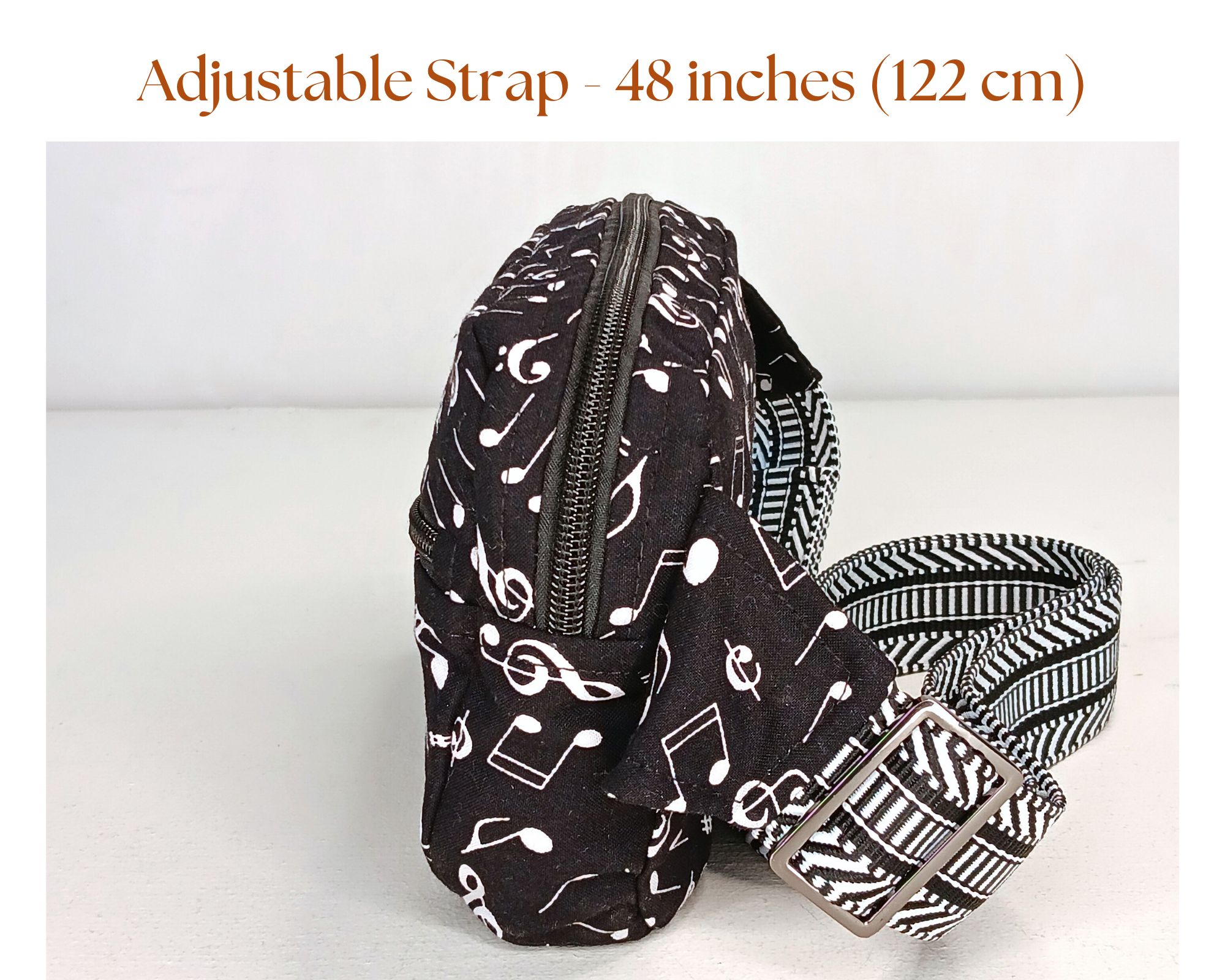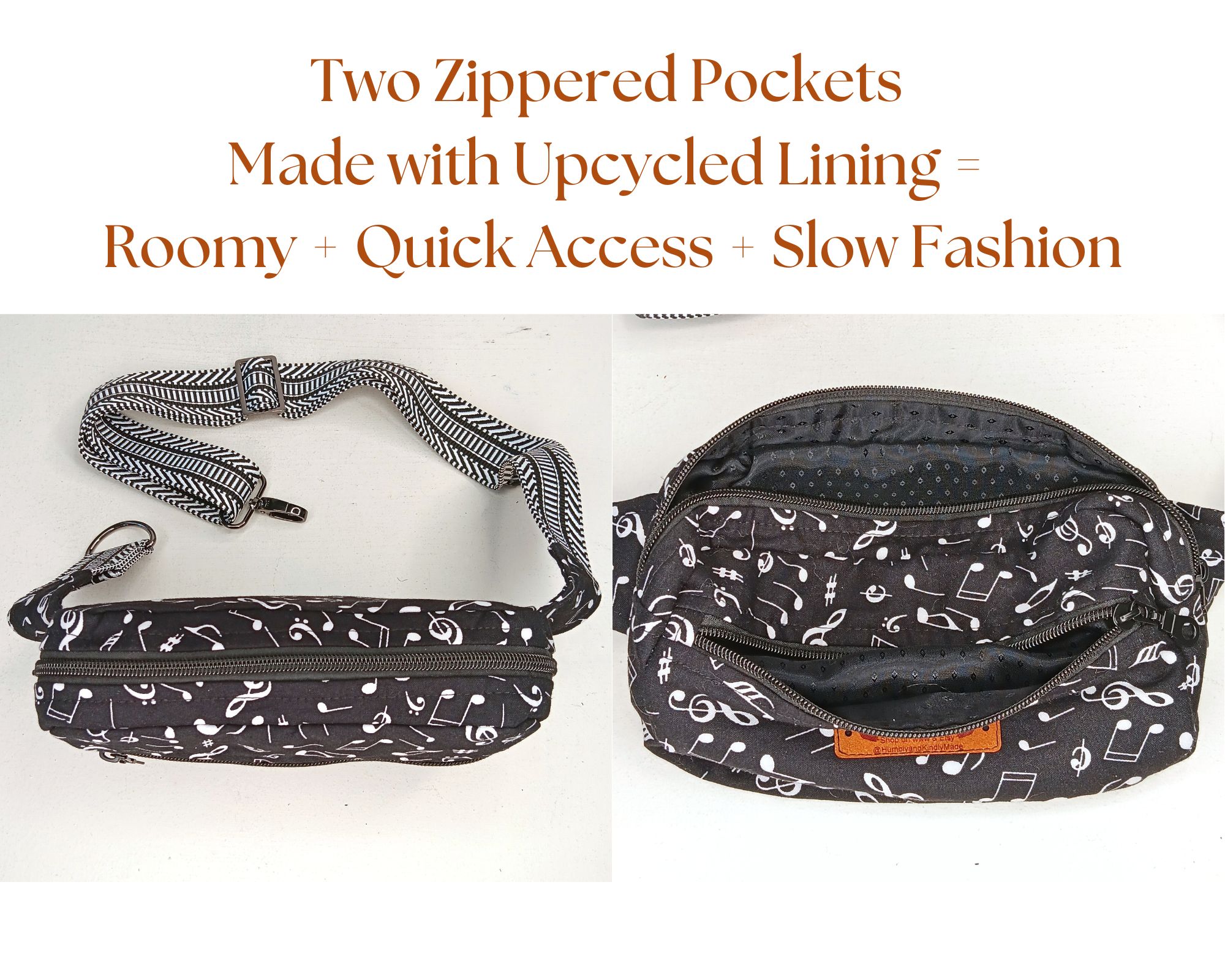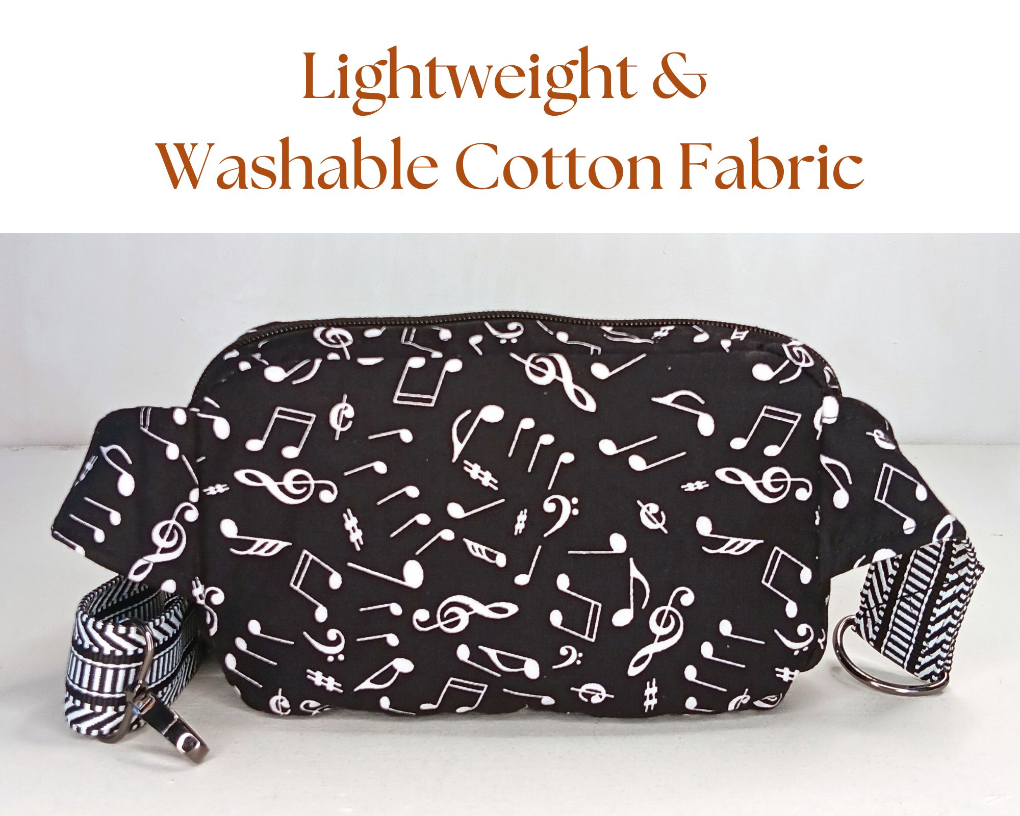 Music Notes Fanny Pack | Compact Washable Waist Pouch | Lightweight Minimalist Belt Bag