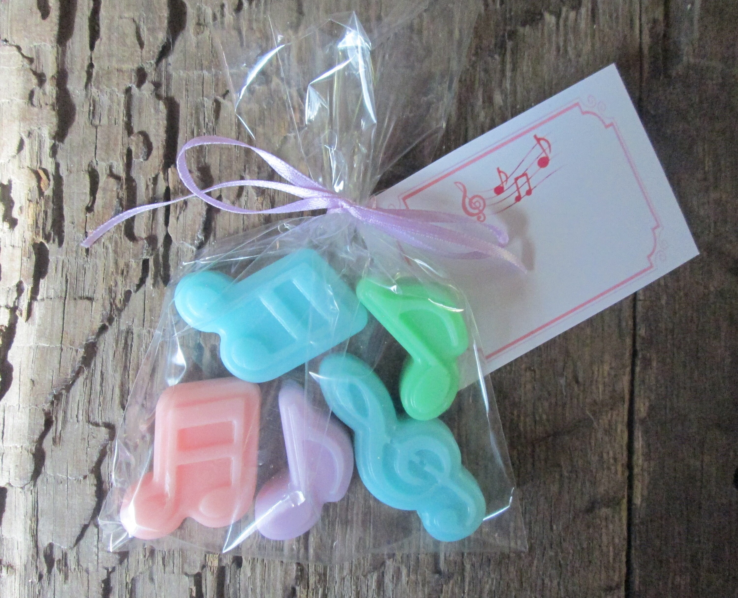 ? Tra-la-la-la! These cheerful music notes shea butter soap favors are sure to make your celebration sing! Perfect for music-themed parties, recitals, concerts, weddings, birthdays, choir events, and gifts for music lovers, these charming soaps add a delightful note to any occasion.