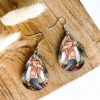 All my earrings are made from sublimation, a process that sinks into the earring blank and gives a lasting deep color. These are subliminal on MDF surface. Never fade, don't break, image is melted into surface, front and back. No matter if they twist and turn it's the same look.