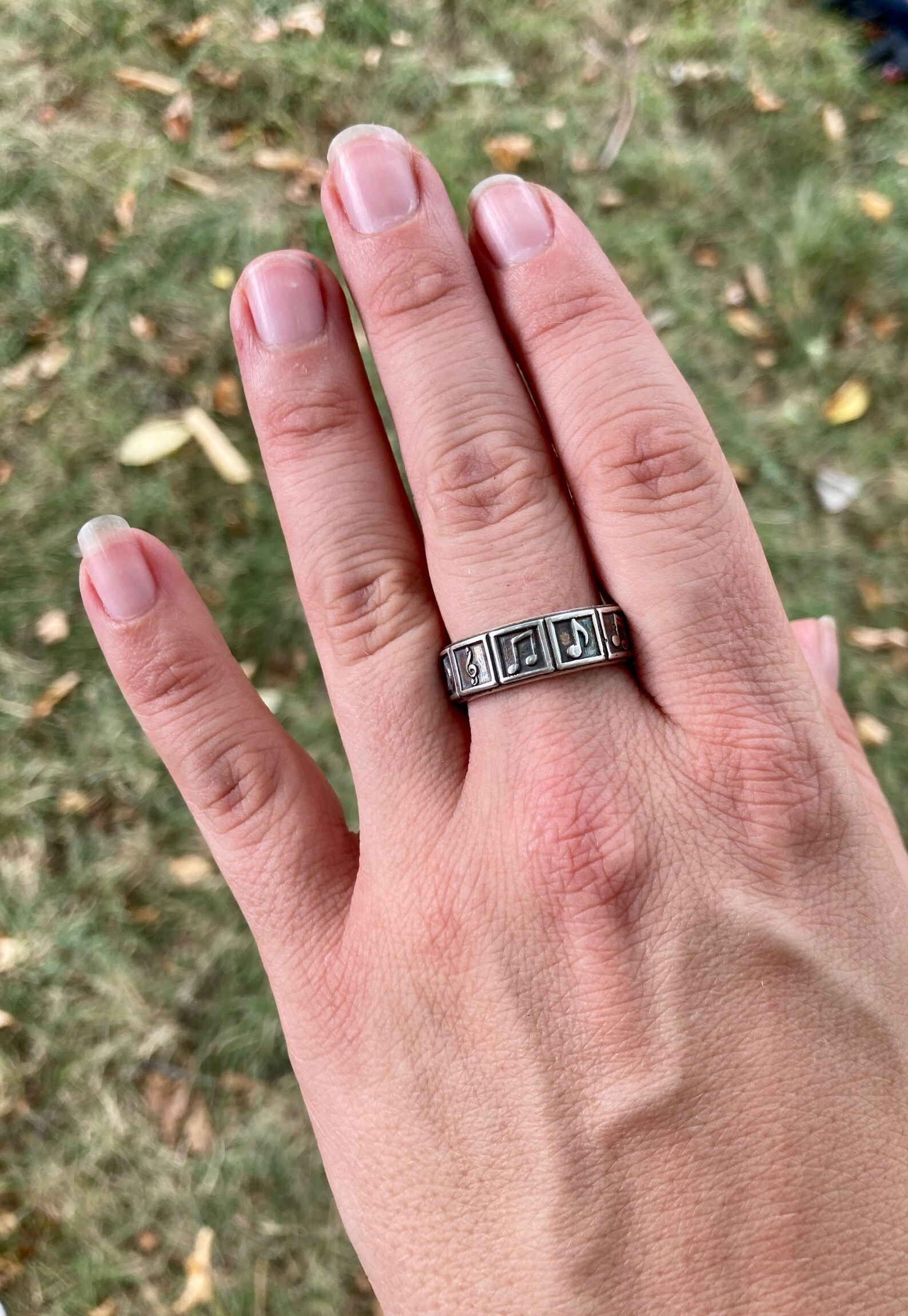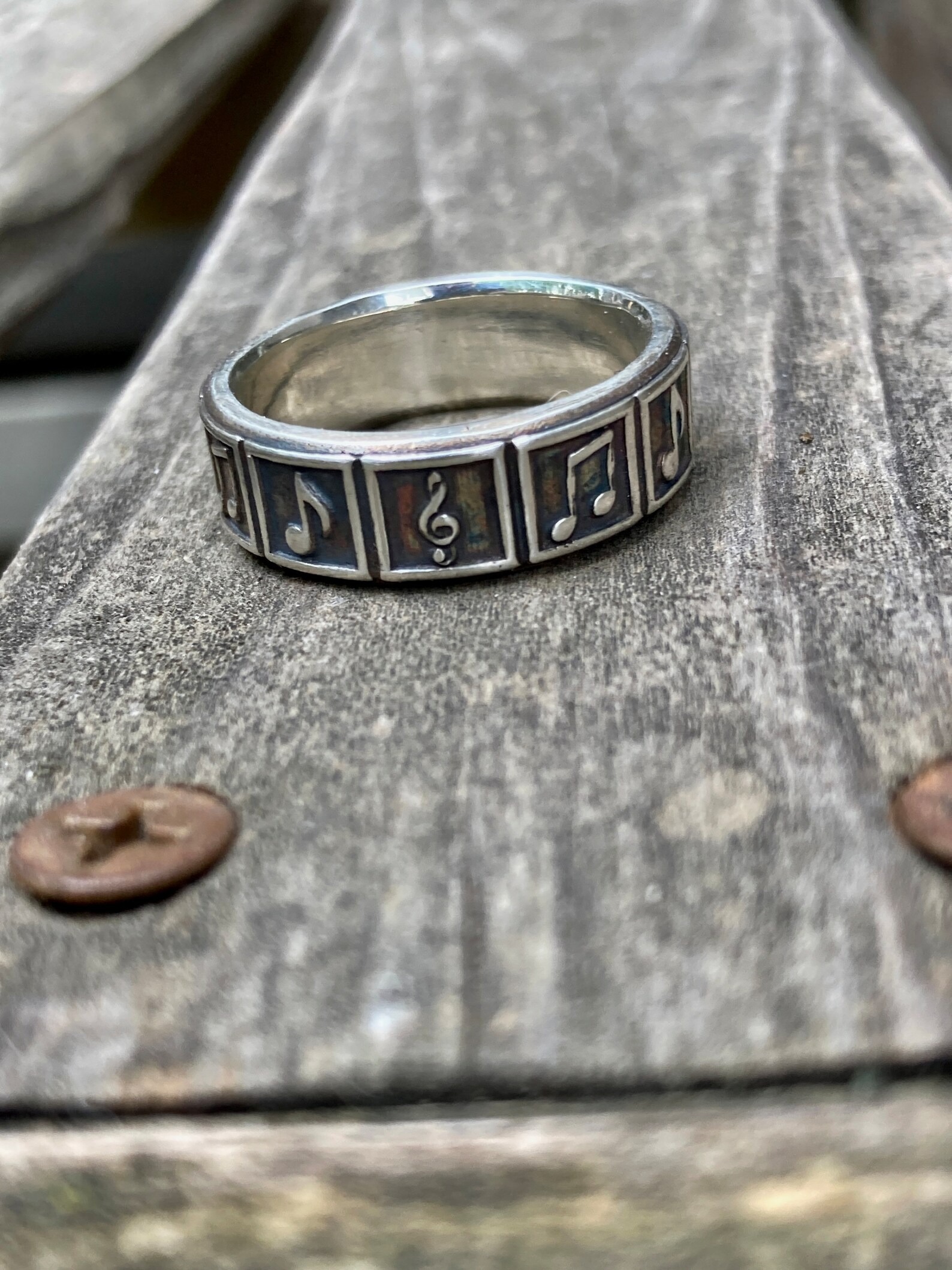 Every ring I offer is designed and crafted by me and me only in my shop in Billings, Montana. Celebrate your love for music with this rustic style music symbol ring. Whether you're a musician, DJ, or simply someone who feels the rhythm of life, this ring is a perfect way to keep your passion close. These also make great gifts!