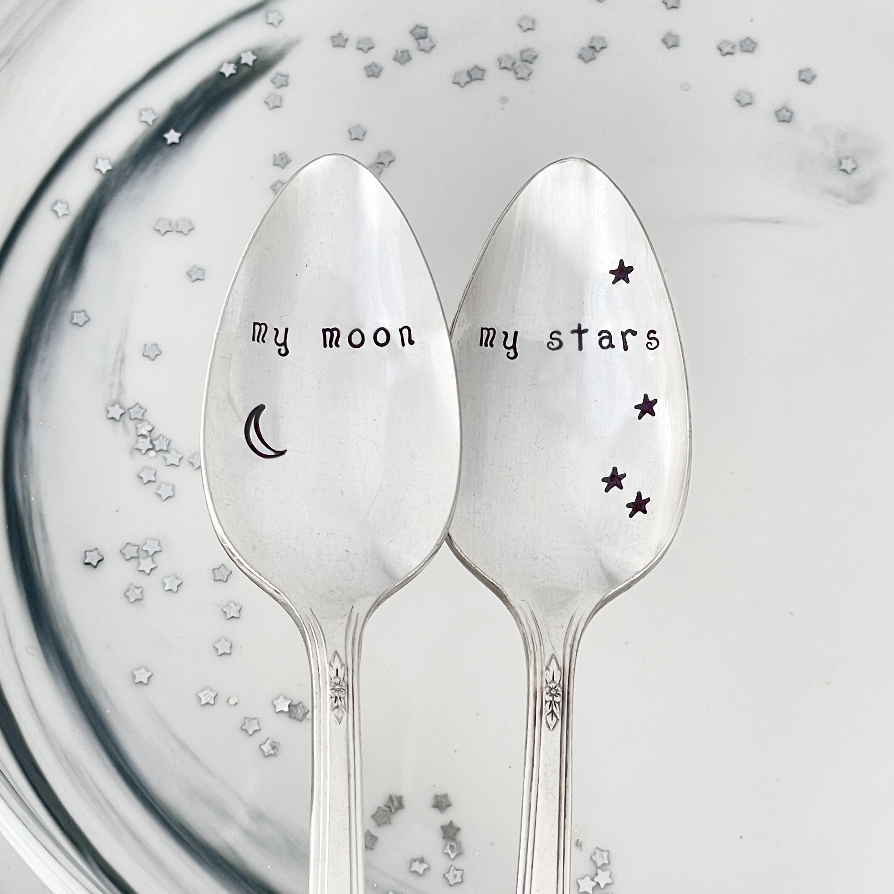 My Moon & My Stars vintage silverplate spoons for a celestial celebration. The perfect gift for the new couple, a beautiful valentine, or a thoughtful anniversary gift to let them know they still mean the world to you.