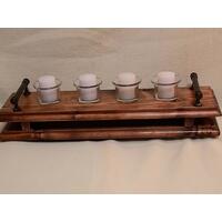 Made using pine wood, glue, nails, mahogany stain and topped off with Gloss polyurethane for that elegant look for your table, your guests will love the look and enjoy having napkins and salt and pepper shakers in eay reach.