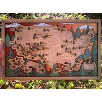 Your map will come with a small stand to set it upright on a shelf, as well as a little bag to store all of the trees until the time comes to place them on the map. The map measures 10" tall by about 16.5" wide. Please note that these are handmade items - every piece of wood is different: they may absorb stain differently or cut differently, which can result in slight variations from the example photos. Your piece will be unique!