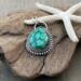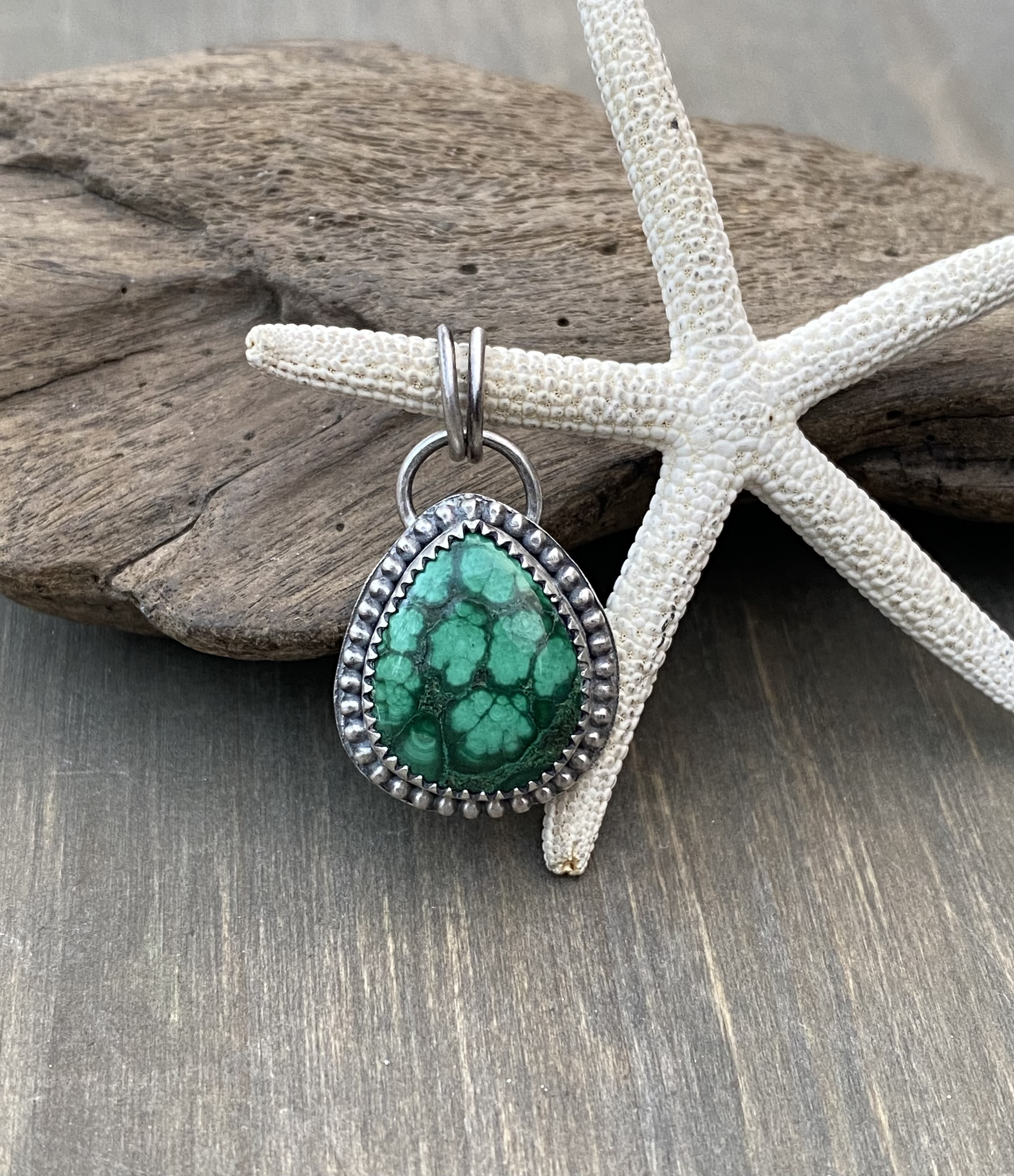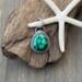 This teardrop stone packs a punch! It’s so pretty! It’s set in .925 sterling silver with a serrated-edge bezel framed by a beaded wire, which I oxidized to let the stone’s color stand out. The healing properties are listed in the photos & will be included with your pendant. Measures 1” x 5/8”. Chain/cord is not included, but can be ordered. Message me for pricing.