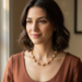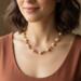 Drape yourself with this exquisite handcrafted necklace, featuring a captivating rhythm of lustrous amber-swirled (natural mother of pearl) beads. Each is unique with its gentle marbling, interspersed with dazzling rondelles that catch the light beautifully. The warm tones of the mother of pearl perfectly complement the sparkling crystals, creating a versatile piece that transitions seamlessly from day to evening wear.
