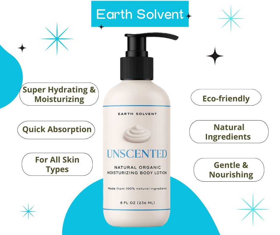 Earth Solvent Natural Organic Moisturizing Body Lotion infused with organic ingredients, this lotion offers deep hydration, leaving your skin soft and radiant without any harsh chemicals. Every bottle is lovingly made by skilled artisans who share our commitment to planet-friendly beauty.
