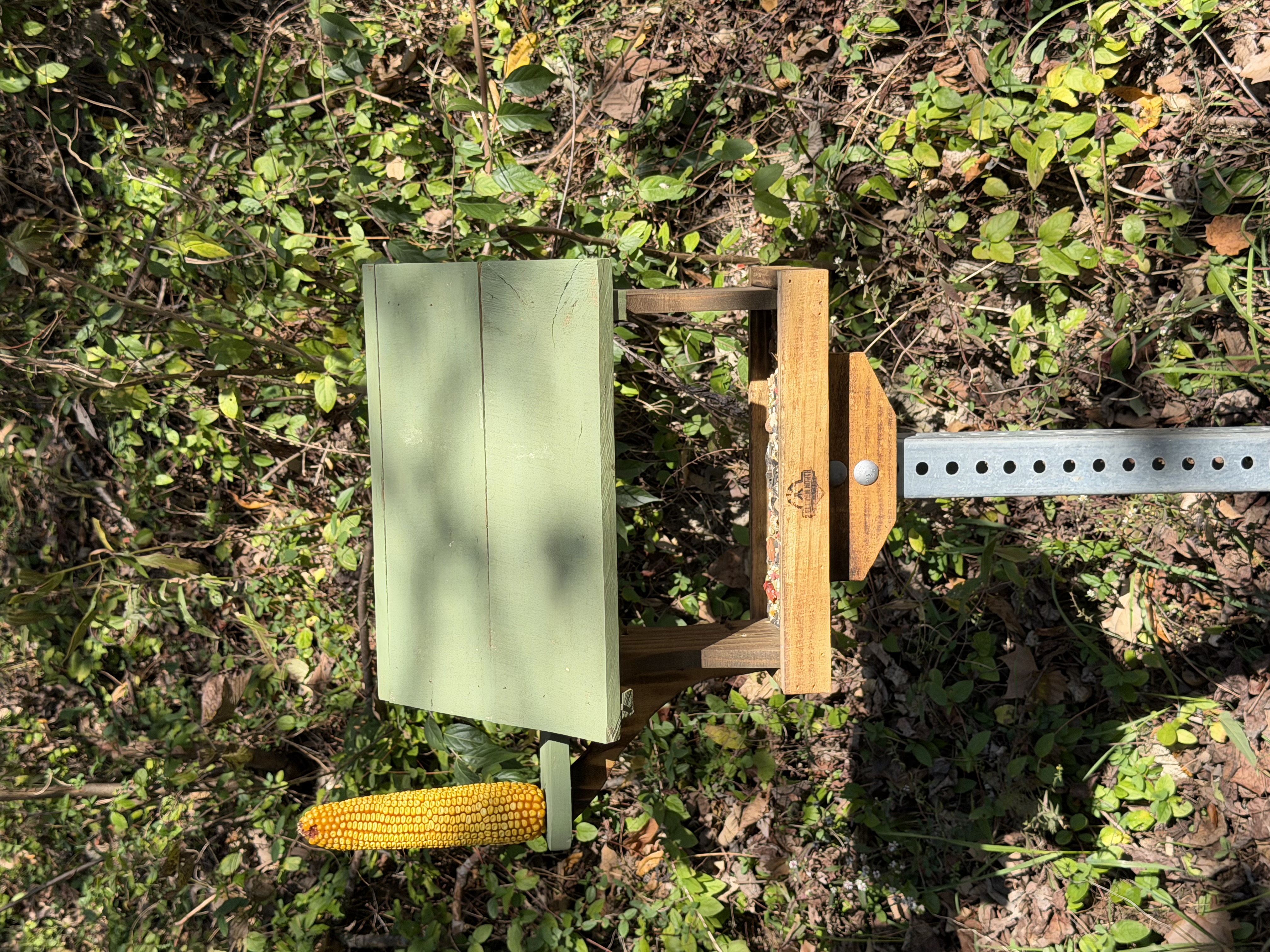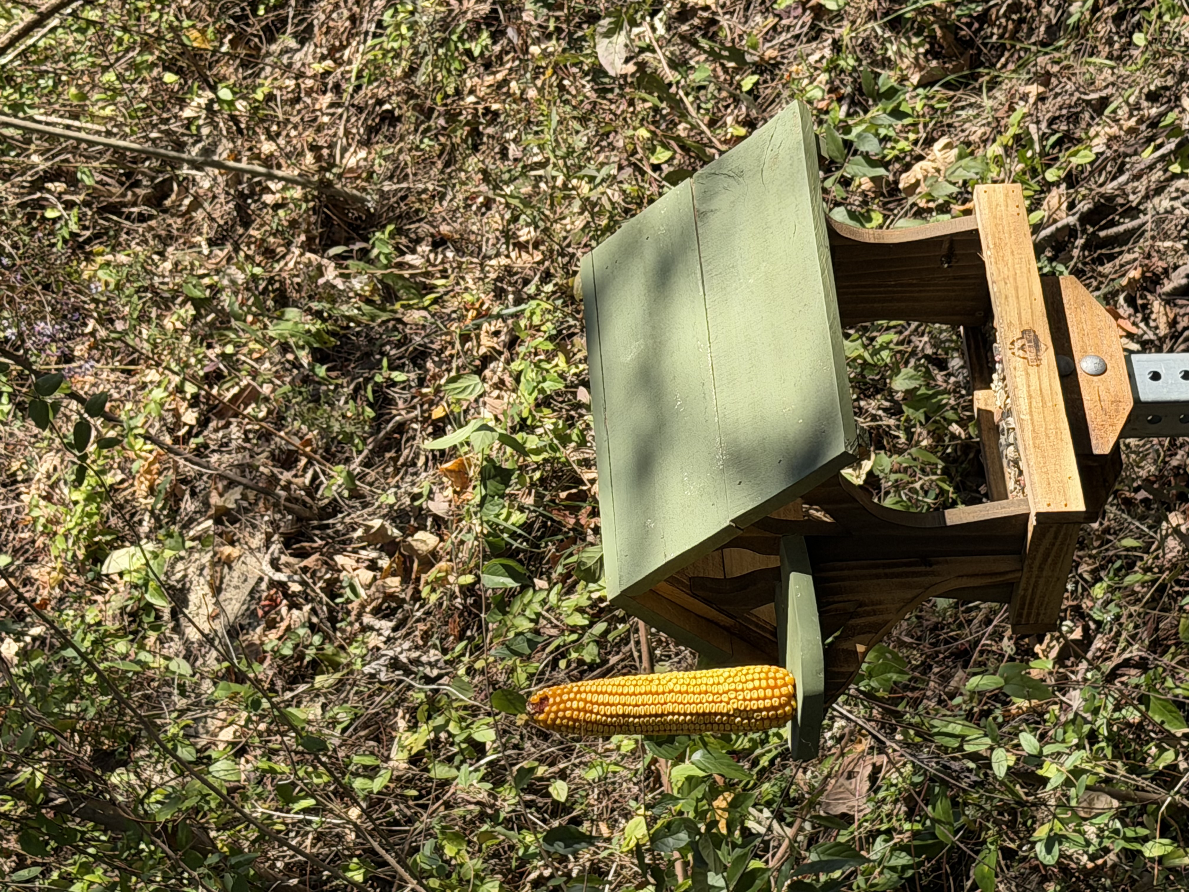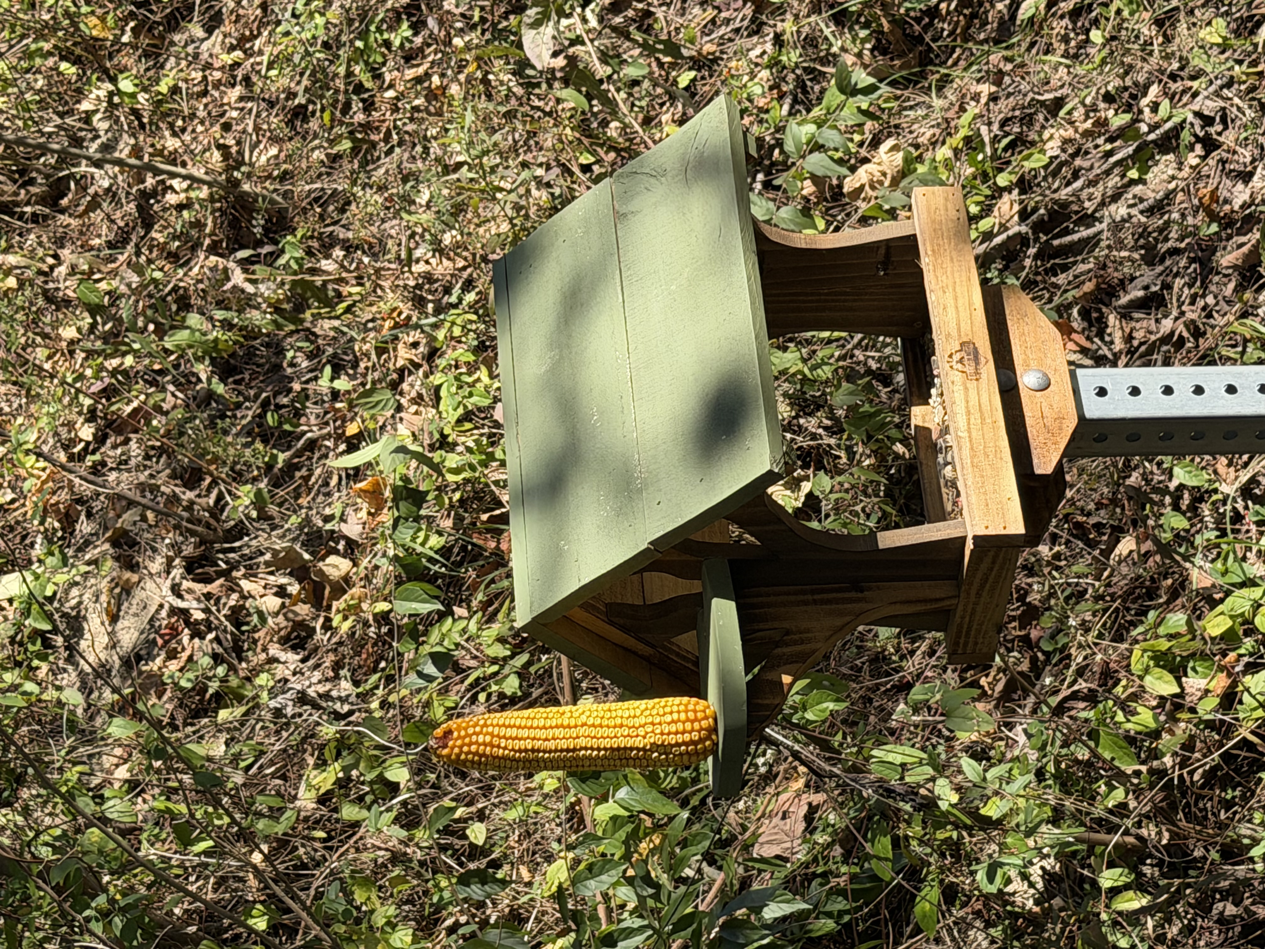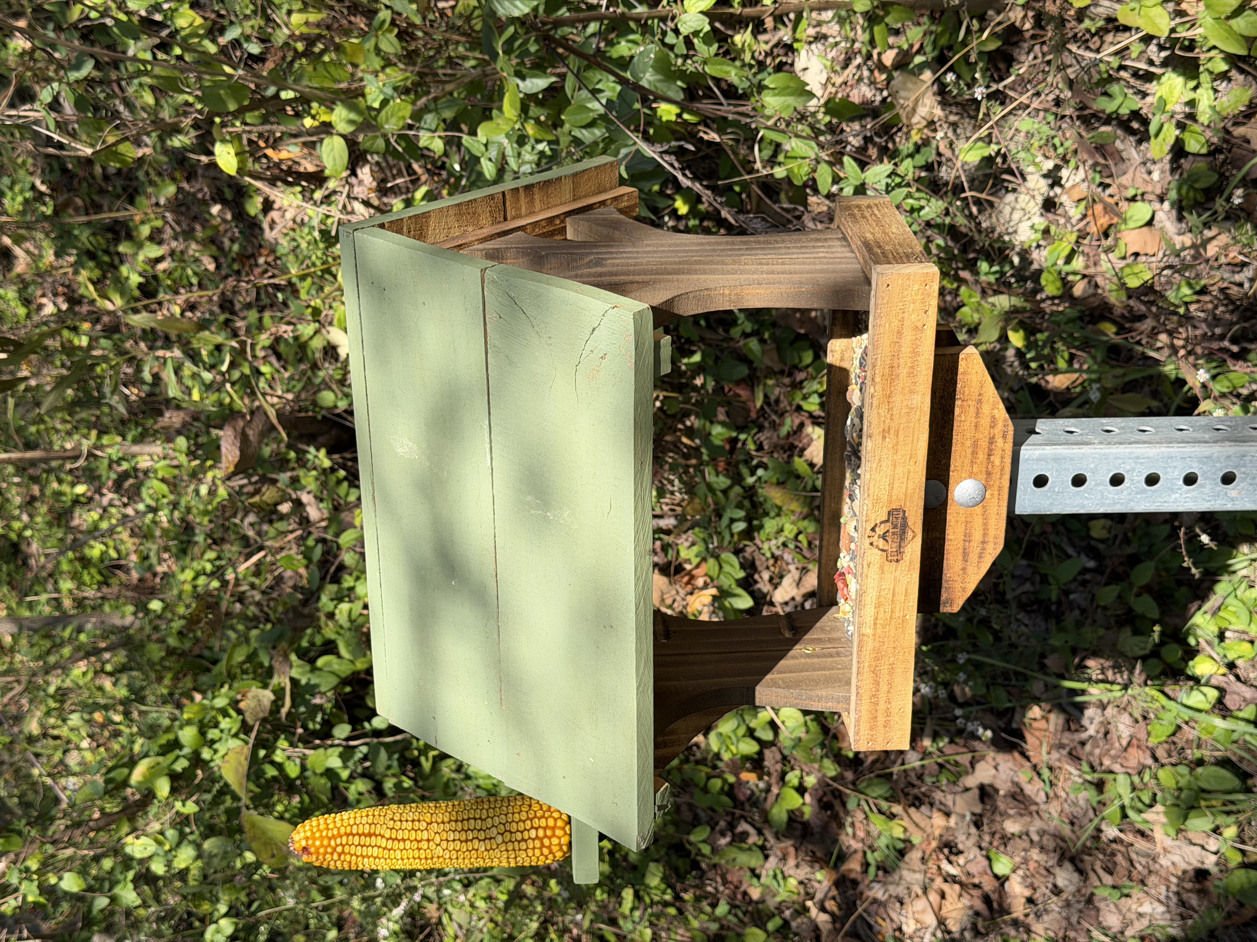 This all cedar handcrafted made in Pennsylvania birdfeeder has a separate branch just for the squirrels. Feed and corn not included.