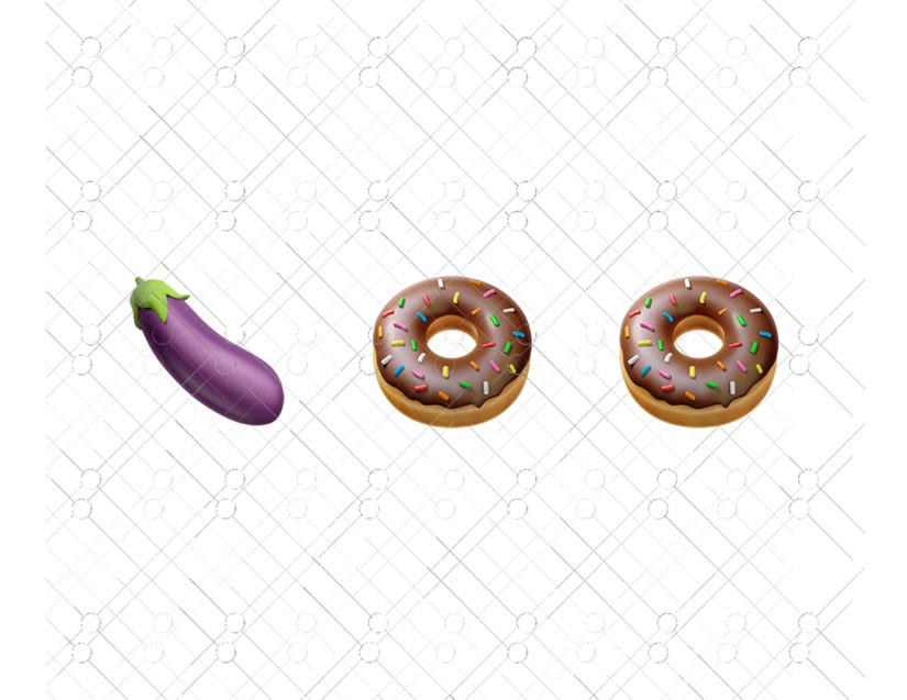 Front Design: An eggplant. A donut. Another donut. No explanation needed. (And none given.)