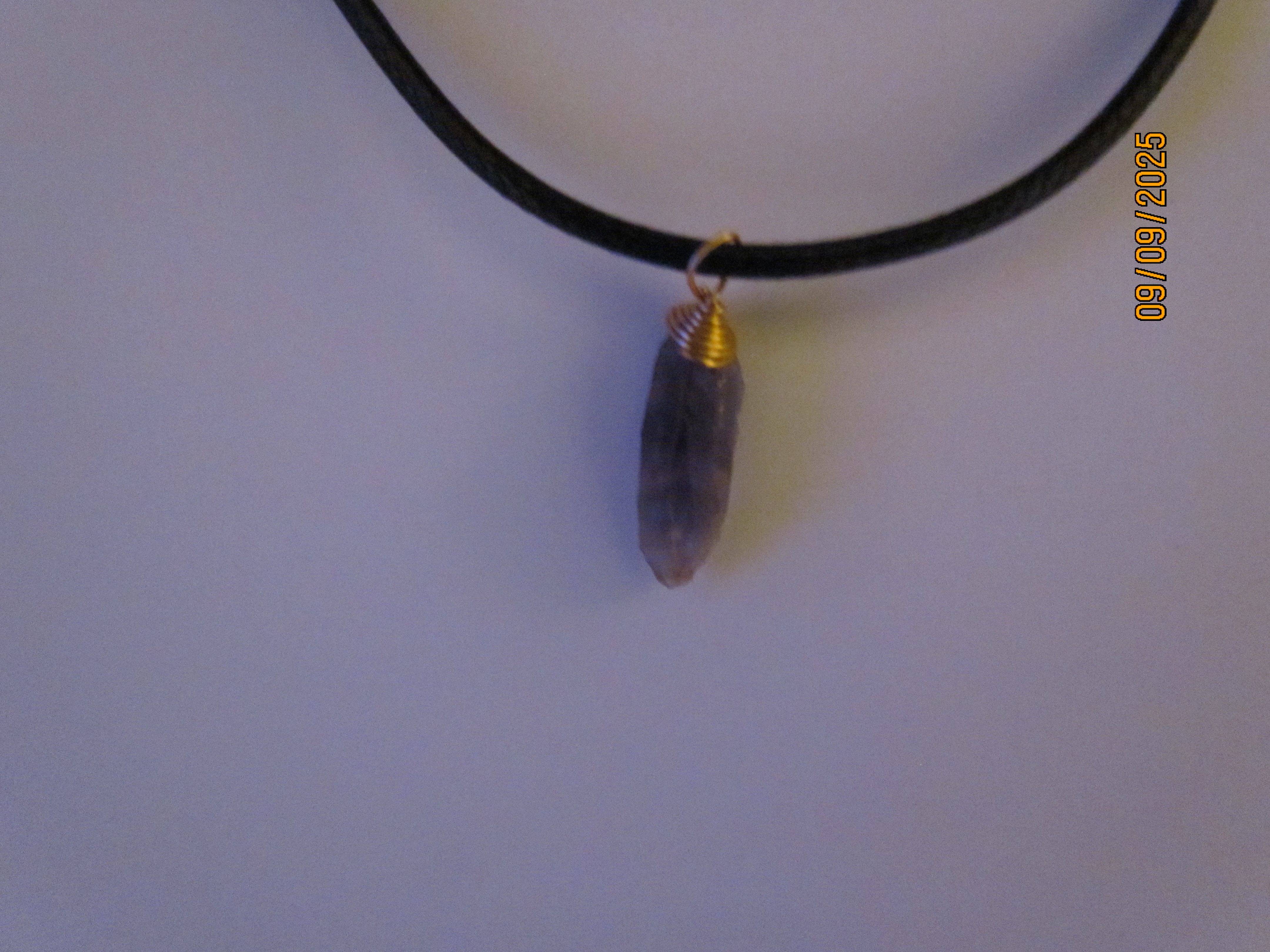 this necklace has a small piece of amethyst and a 19 inch chain.