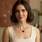 * Bold triangular red pendant