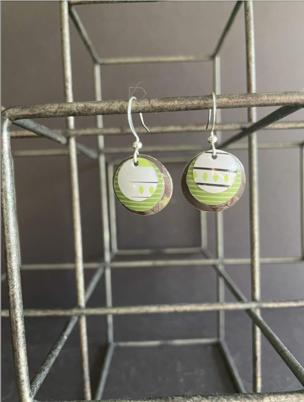 Nested earrings like this one were the initial impetus for me making earrings out of tin. I love that this design doesn't get old. Playing with color, these are no exception.