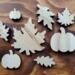This set of Natural wood Fall magnets is available for just leaves, just pumpkins, or a mix. Each piece is one of a kind and will add a lovely Autumn flair to any fridge, cubicle, file cabinet or other surface a magnet will stick to.