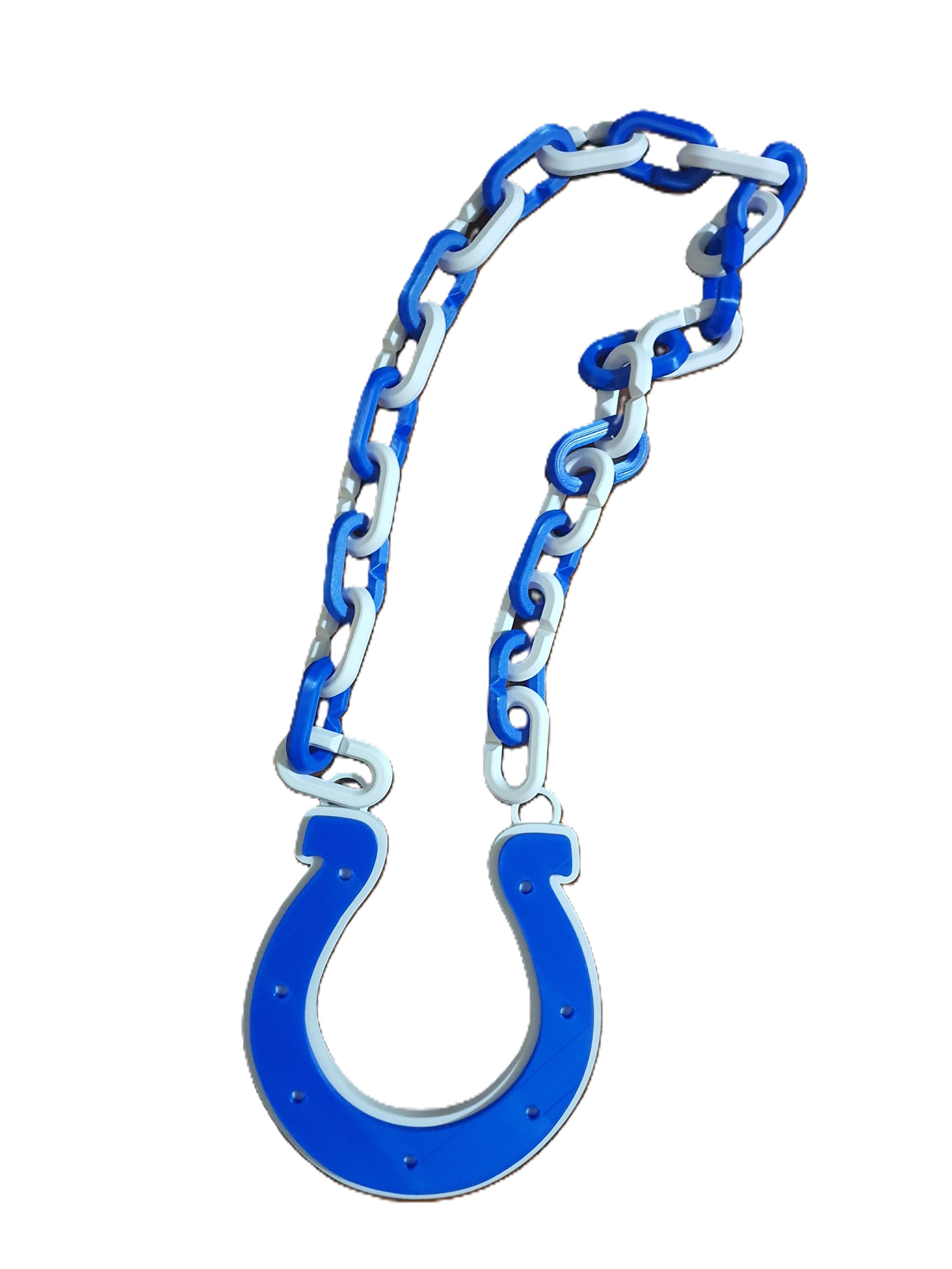 Description: Show your Colts pride with this New Indianapolis Colts 6x6 Blue Pendant Emblem Chain. This jumbo fan hype necklace features a bold 6-inch blue horseshoe emblem on a 32-inch chain, perfect for gameday energy, tailgates, or standout fan gear displays. Lightweight, durable, and designed for maximum team spirit, it’s the ultimate accessory for dedicated Indianapolis fans.