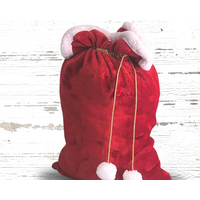 These Tiny Santa Sacks are made of soft velvety fabric and have a faux fur top edge and stunning gold ribbon with a fine gold cording running through. The pom poms add a special detail just like Santa's real bag!