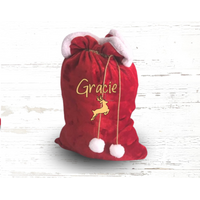Personalize your Santa Sack with either a glitter white vinyl or a classic glitter gold vinyl. Choose the Christmas Image you prefer, or just a name!