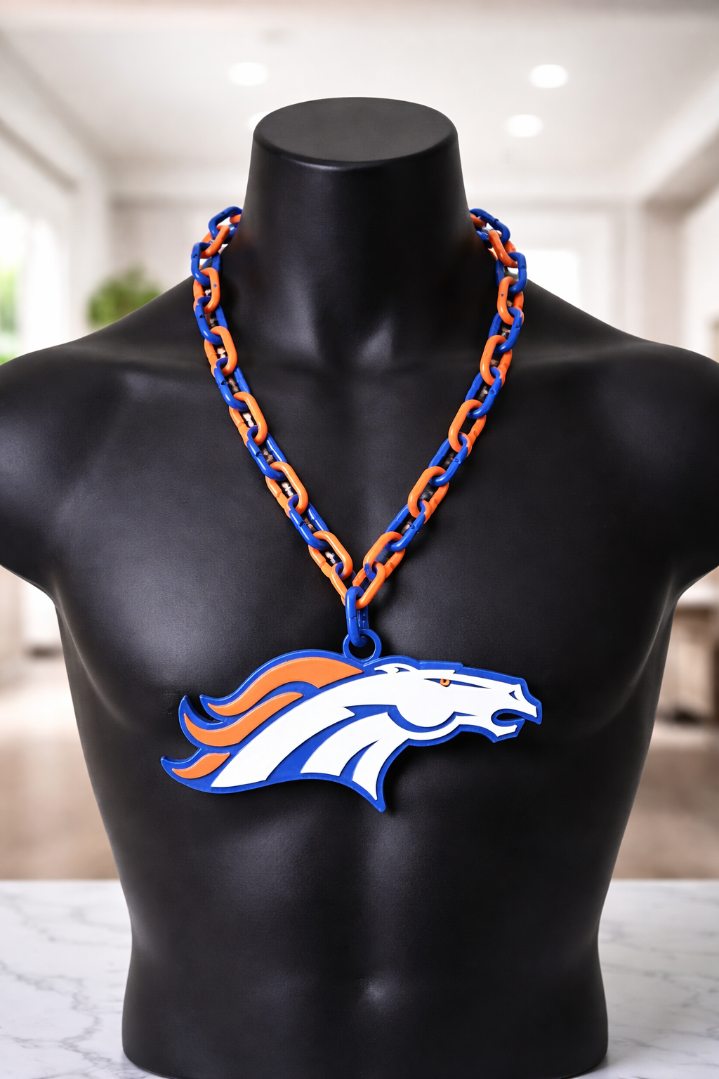 Title: NFL Denver Broncos Fan Pendant Chain Jumbo Size Plastic 32" Necklace