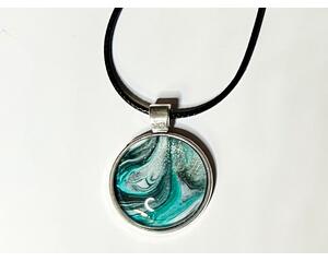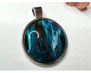 Original Handmade Fluid Art Round Pendant Necklace, Cool Blue...