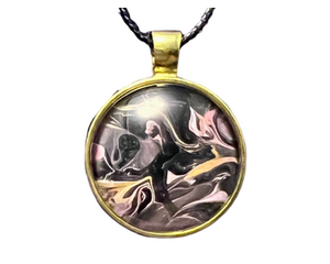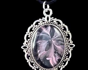 Original Handmade Fluid Art Round Pendant Necklace *Black, Pi...