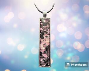 Original Acrylic Fluid Art Pendant Necklace *Pink and Black “...