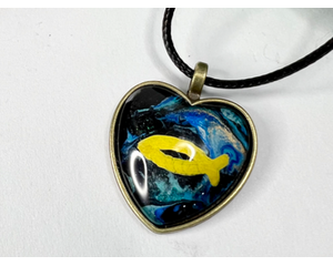 Original Handmade Fluid Art Pendant Heart-Shaped Necklace *Sh...