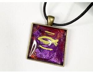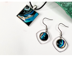 Original Handmade Fluid Art Square Pendant Necklace and Earri...