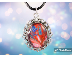Original Handmade Fluid Art Decorative Oval Pendant Necklace ...