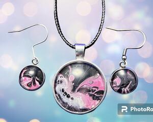 Original Handmade Fluid Art Pendant Necklace and Earrings *Pi...