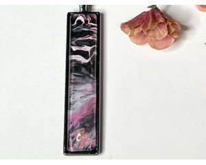 Original Acrylic Pink and Black Fluid Art Pendant Necklace *S...